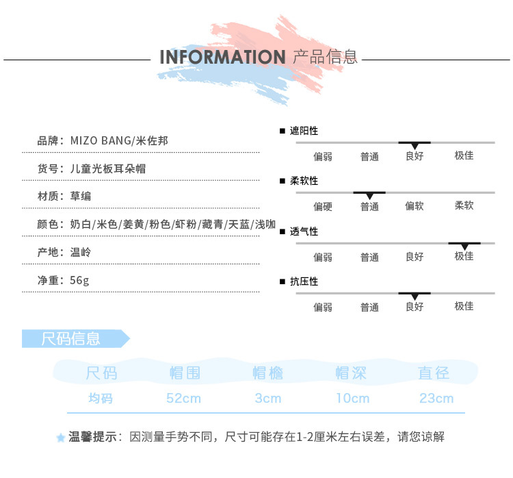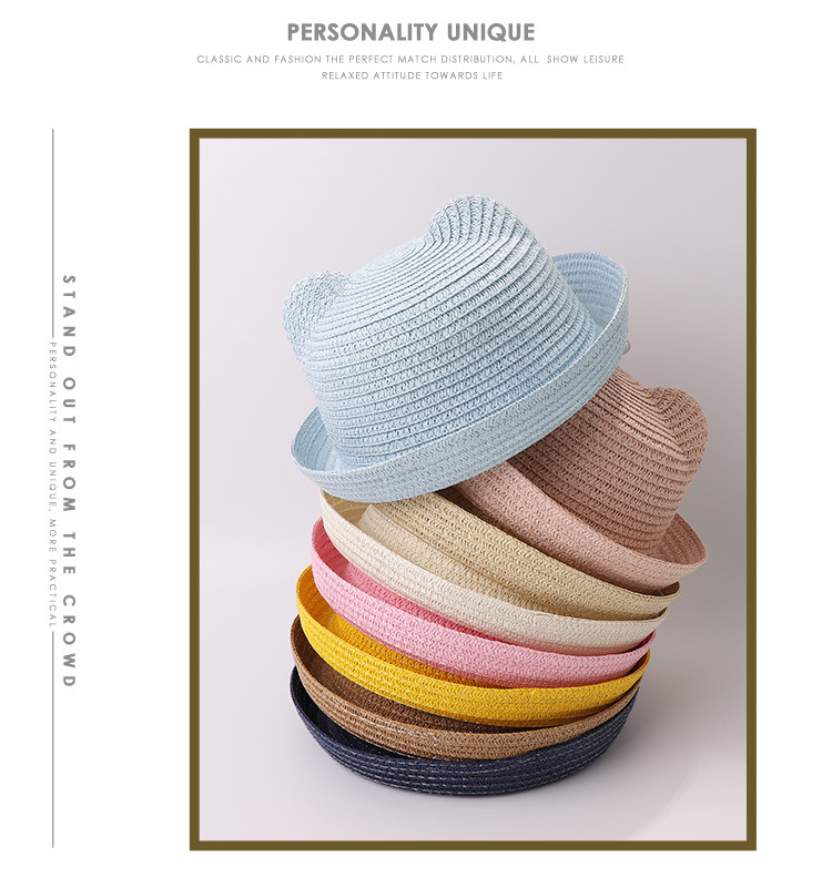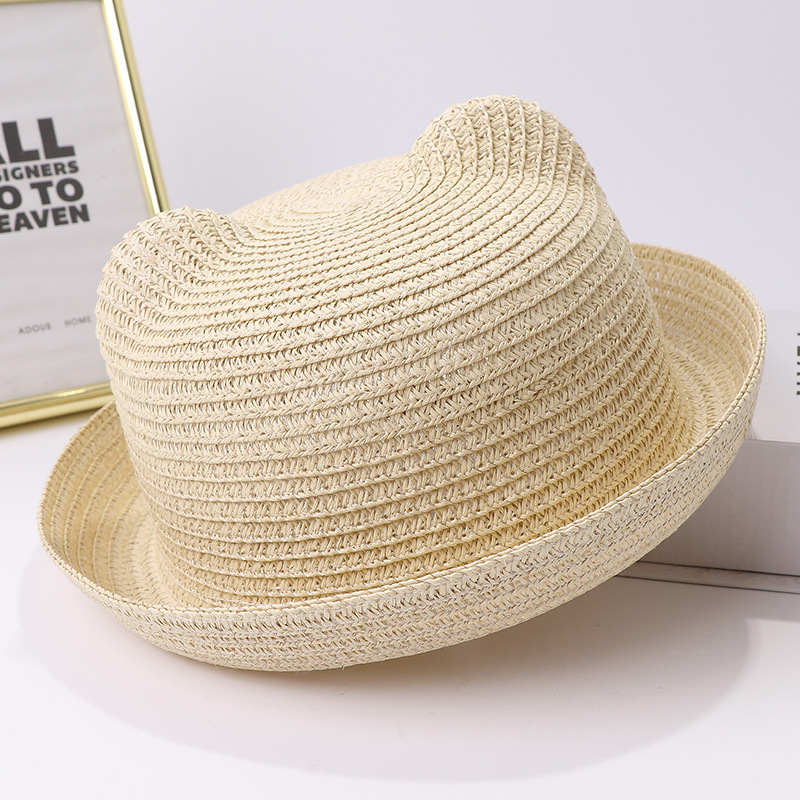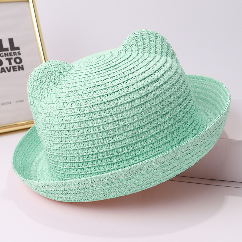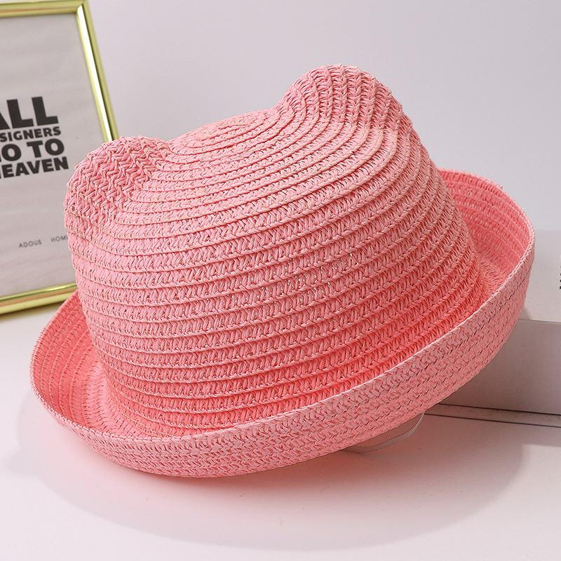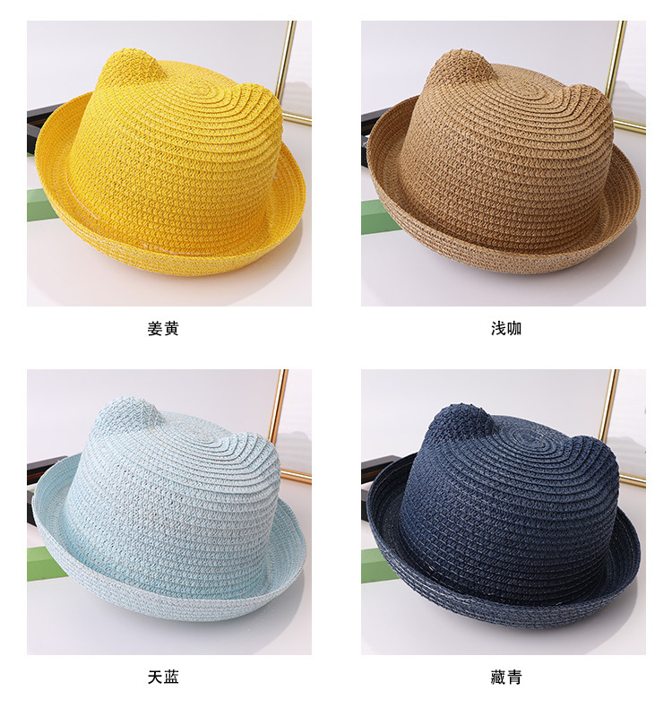 한국의 새로운 여름 모자 귀여운 고양이 귀 단색 밀짚 모자 어린이 만화 야외 태양 모자 도매스토어 가기