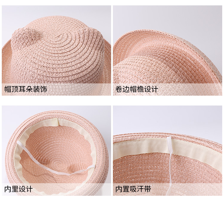 한국의 새로운 여름 모자 귀여운 고양이 귀 단색 밀짚 모자 어린이 만화 야외 태양 모자 도매