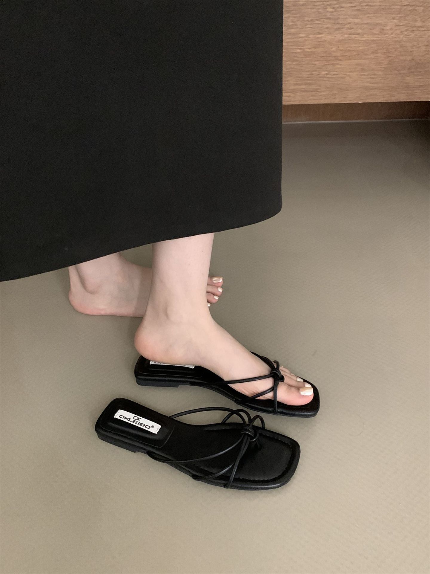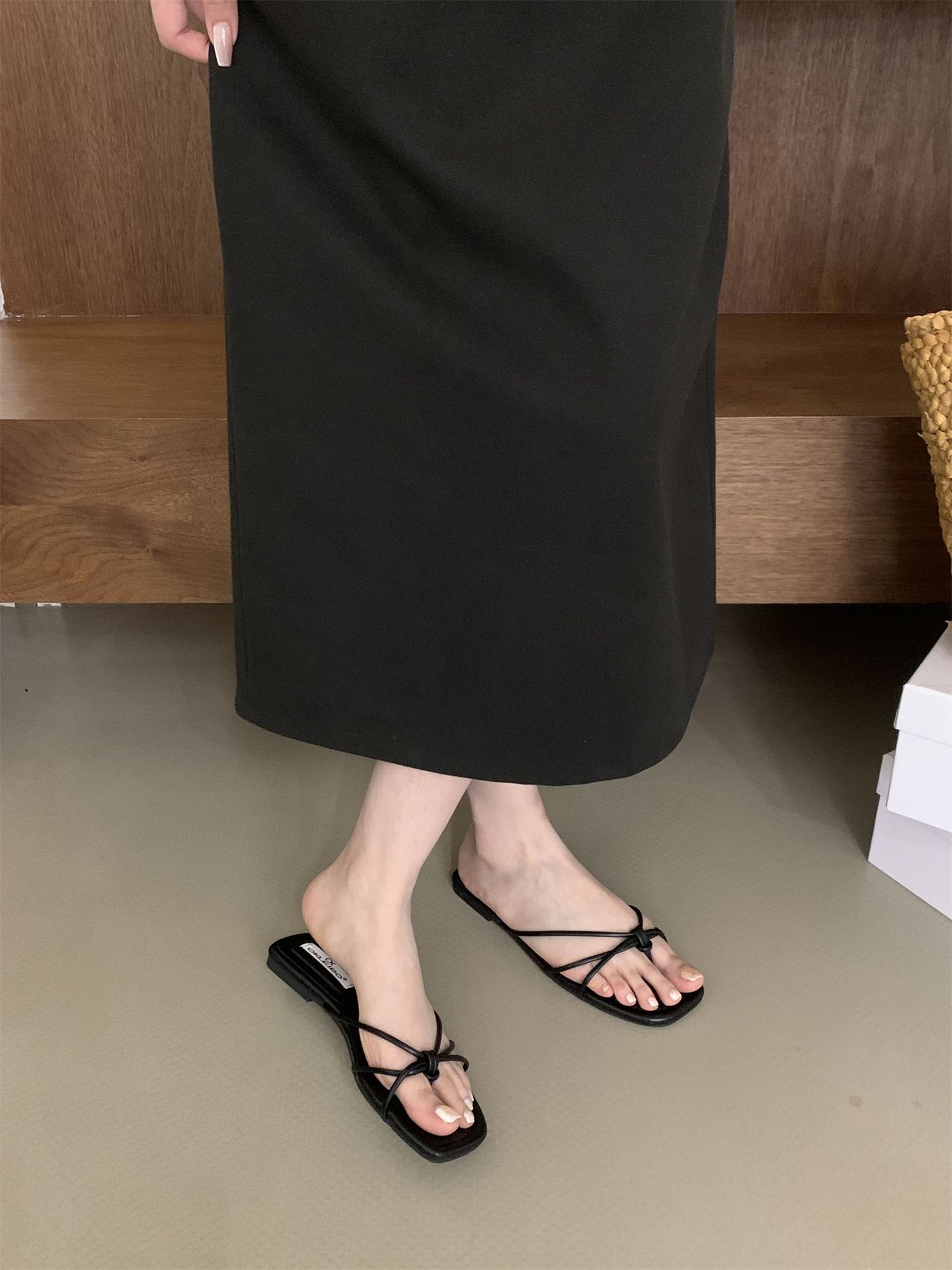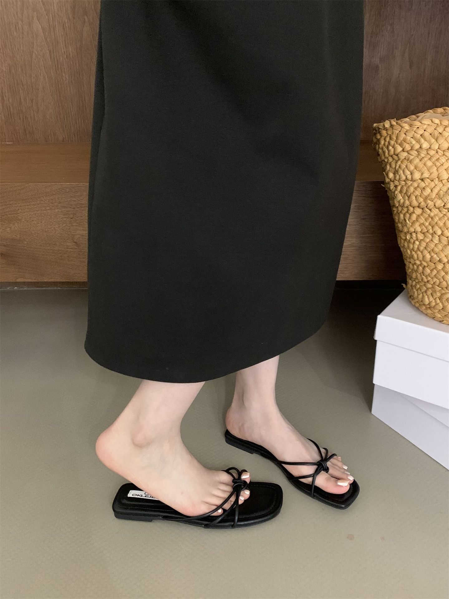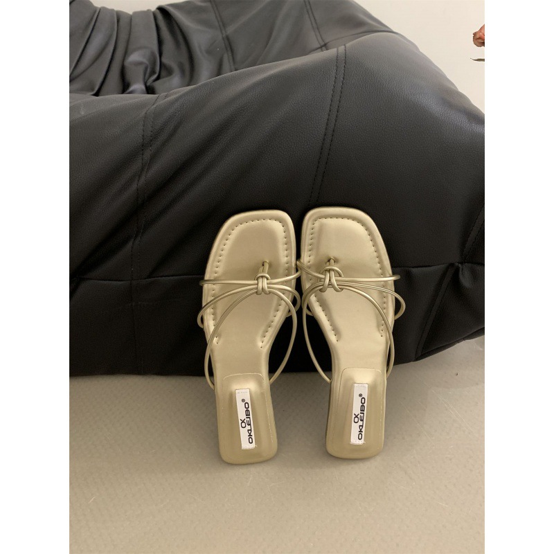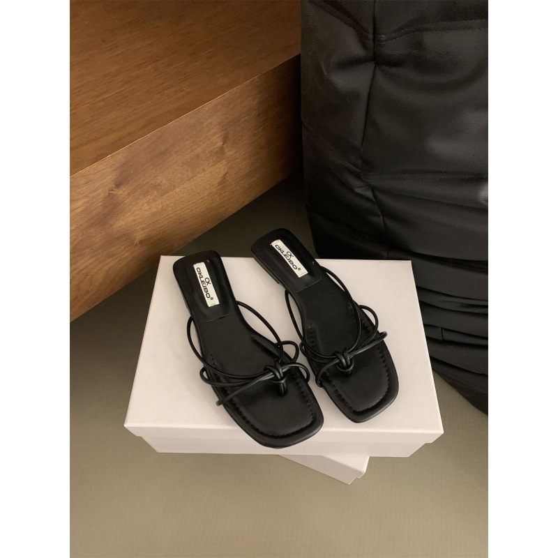여성을위한 프랑스 스타일 레트로 플랫 슬리퍼 여름 외부 착용 2024 통 얇은 벨트 간단한 요정 소프트 하단 미끄럼 방지 플립 플롭 여성용