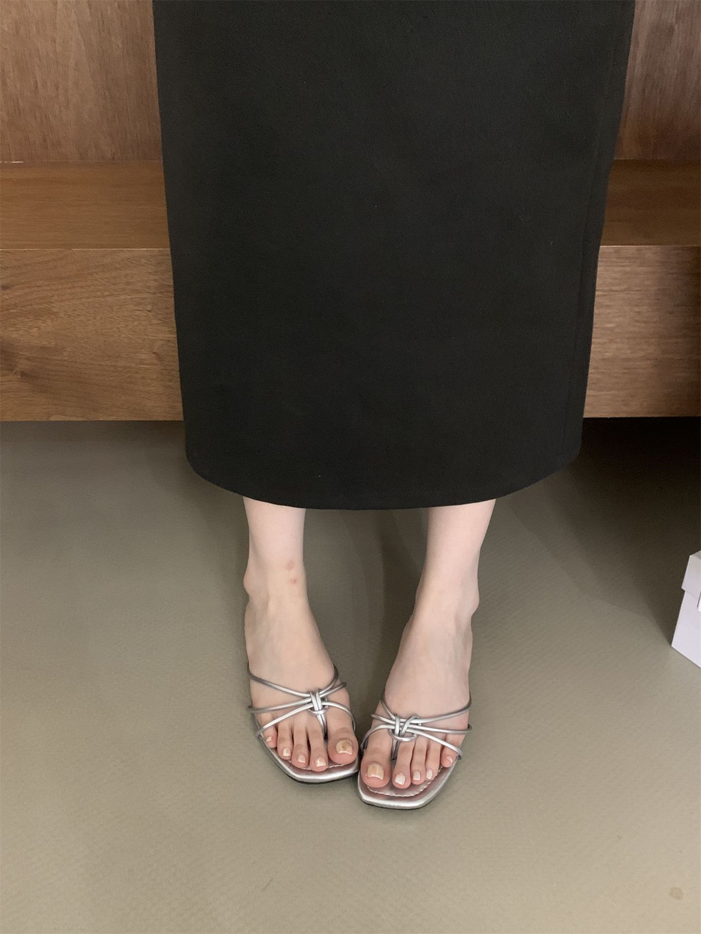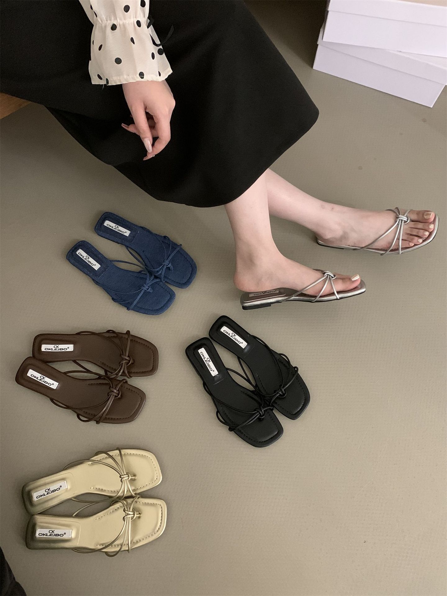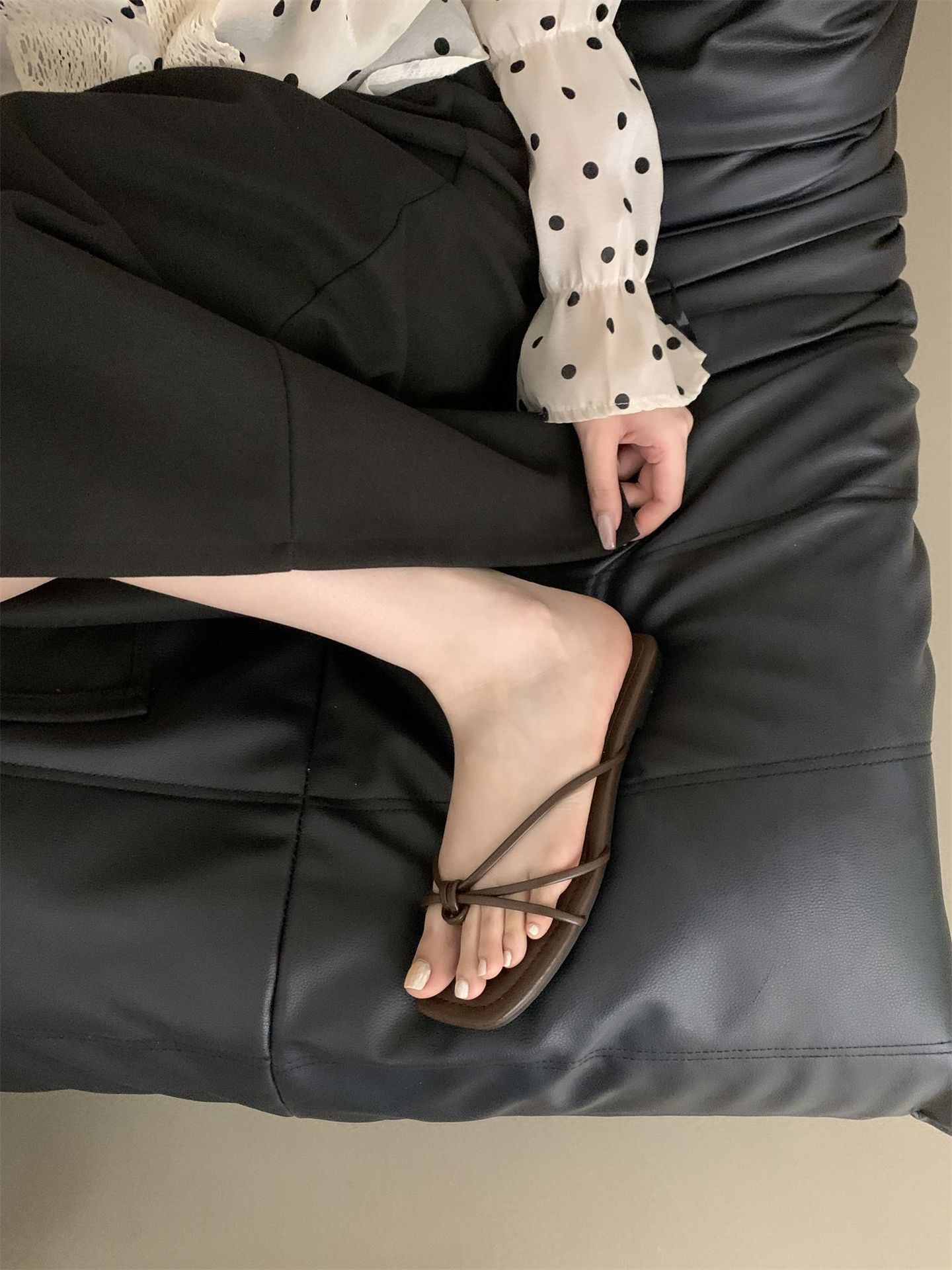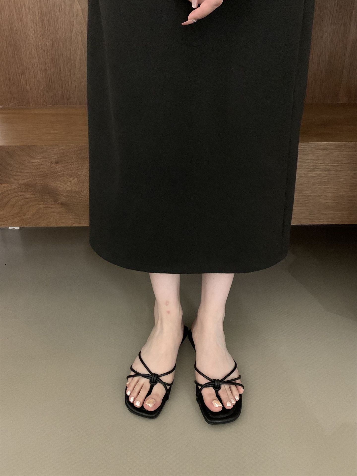 여성을위한 프랑스 스타일 레트로 플랫 슬리퍼 여름 외부 착용 2024 통 얇은 벨트 간단한 요정 소프트 하단 미끄럼 방지 플립 플롭 여성용