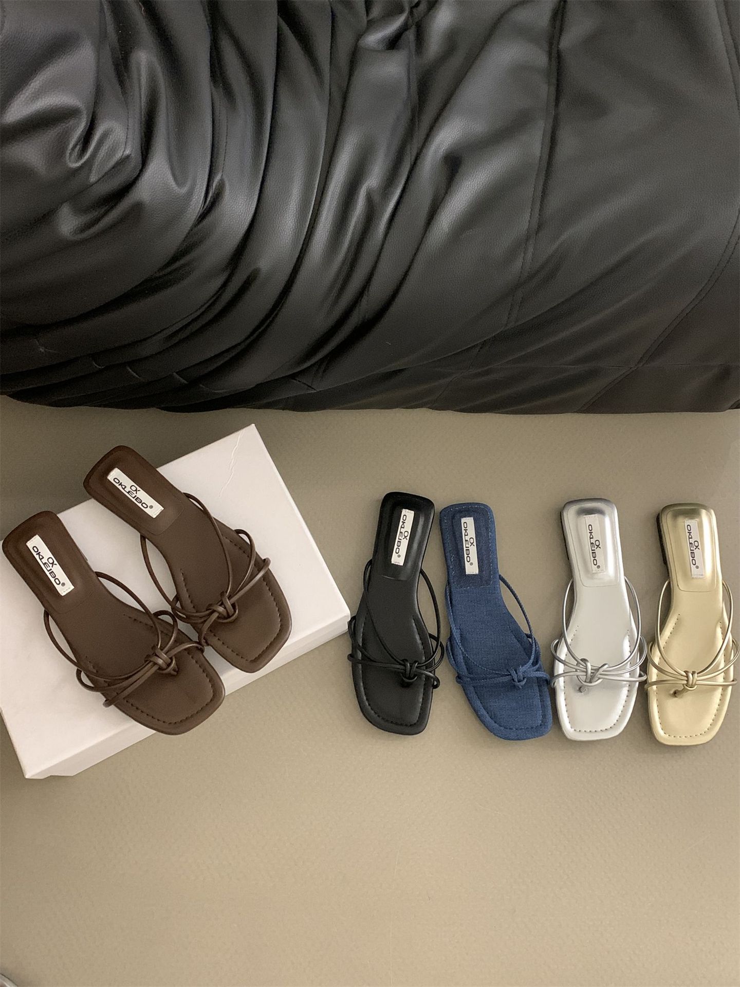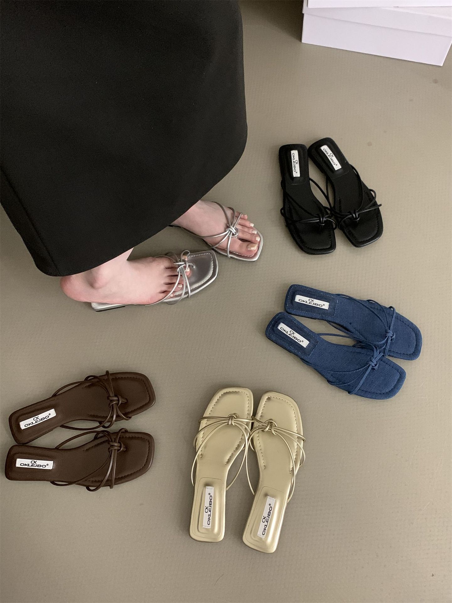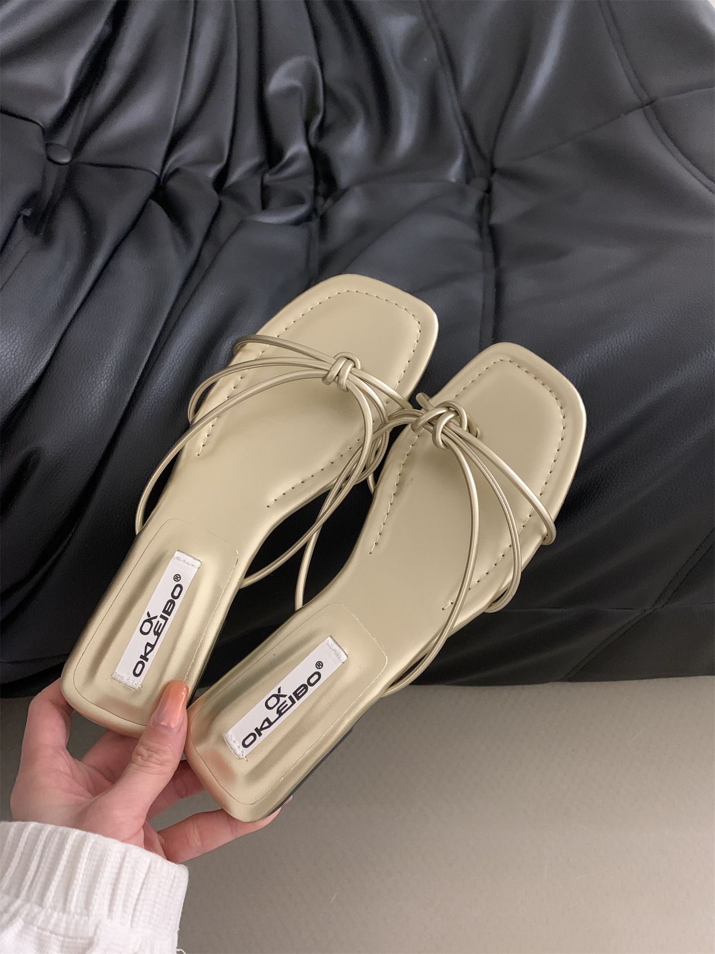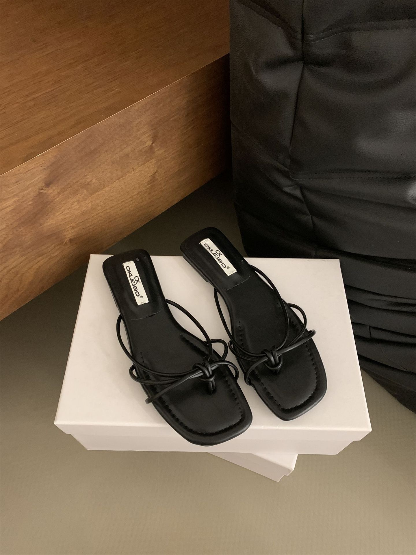 여성을위한 프랑스 스타일 레트로 플랫 슬리퍼 여름 외부 착용 2024 통 얇은 벨트 간단한 요정 소프트 하단 미끄럼 방지 플립 플롭 여성용