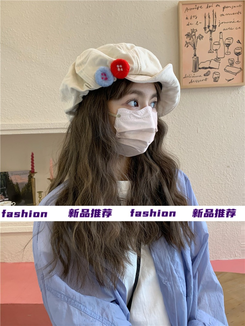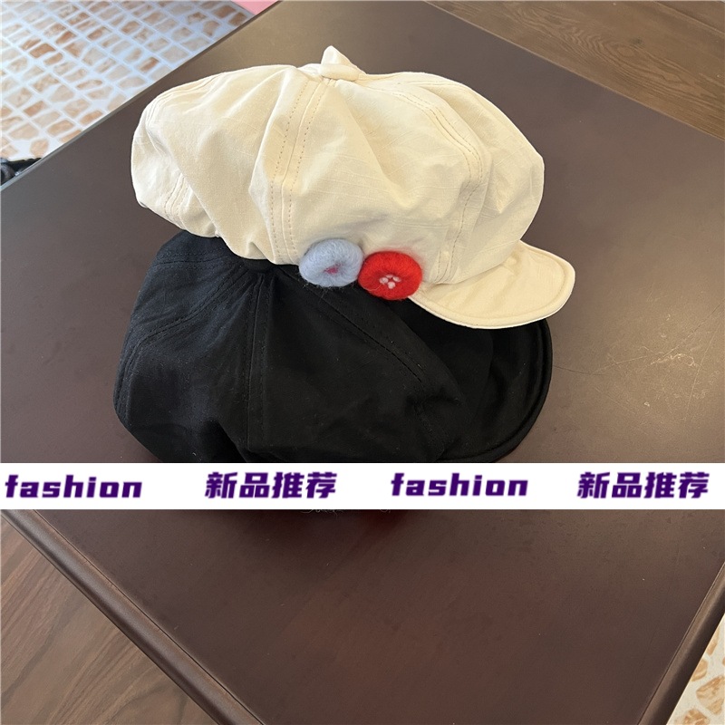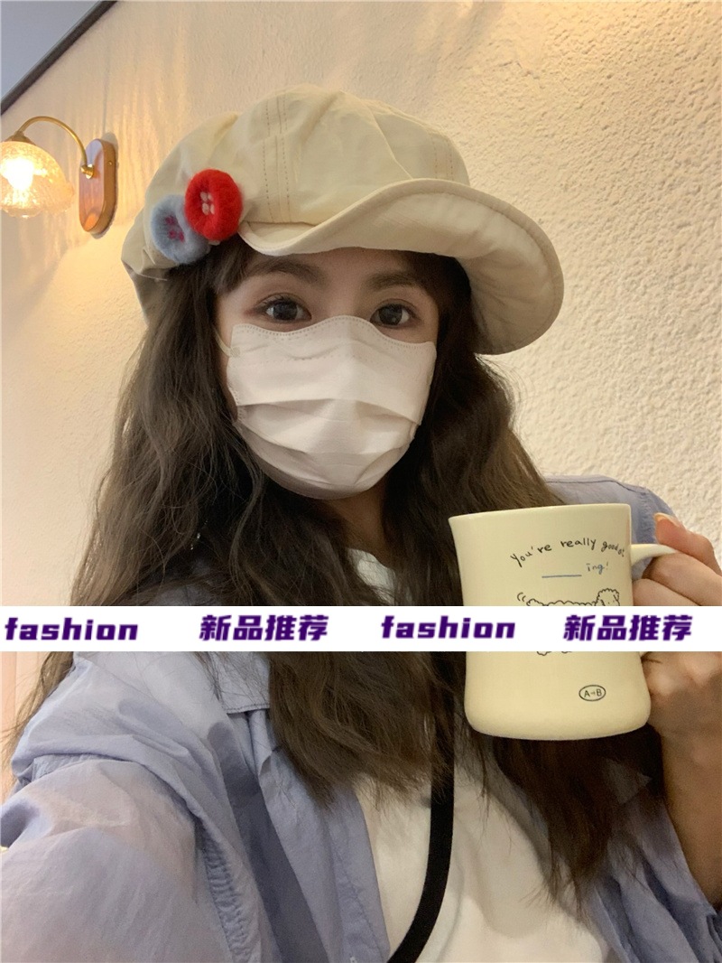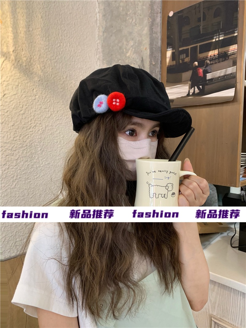 새로운 레트로 일본식 면 및 린넨 화가의 모자 어린이 버튼 큰 머리 흔들기 구름 팔각형 모자 얼굴 작은 버드 모자 트렌디스토어 가기