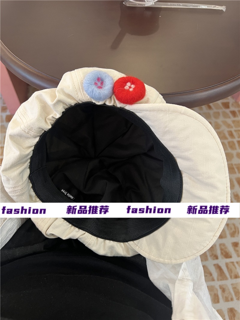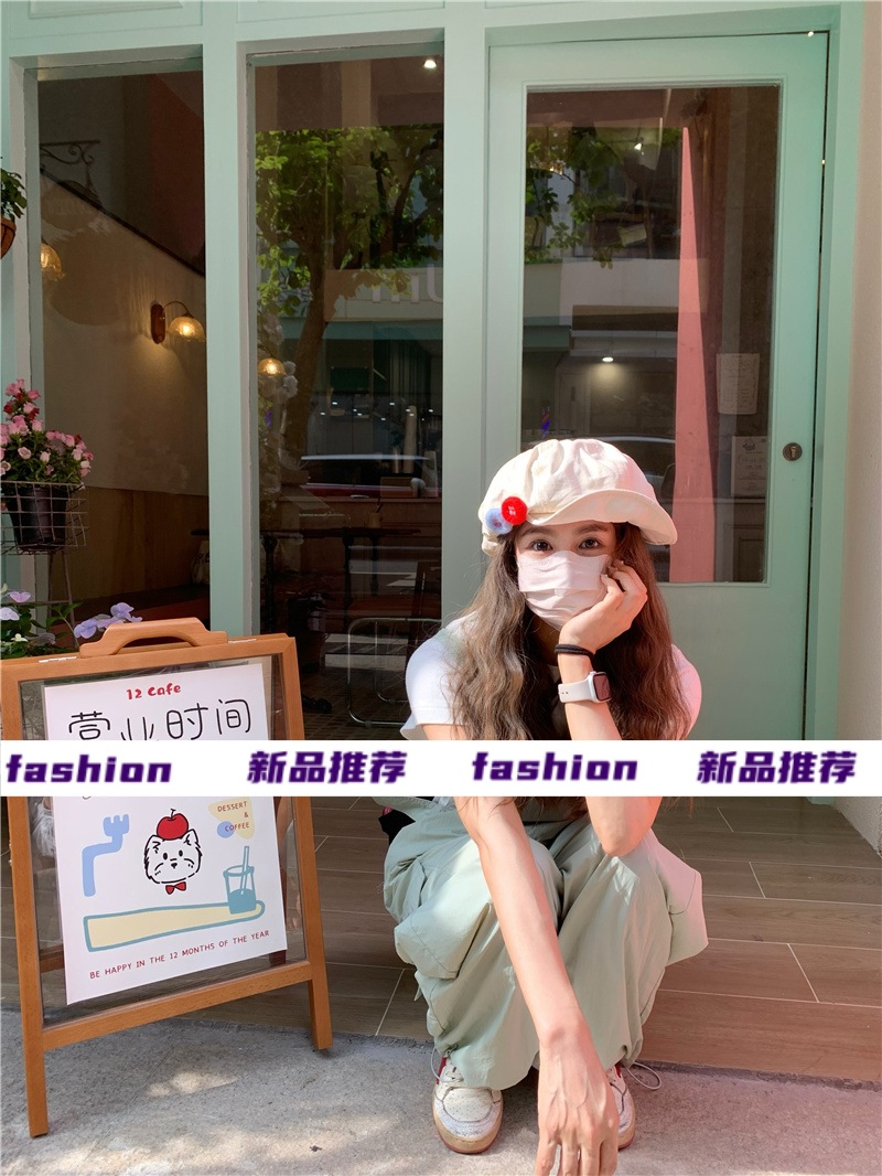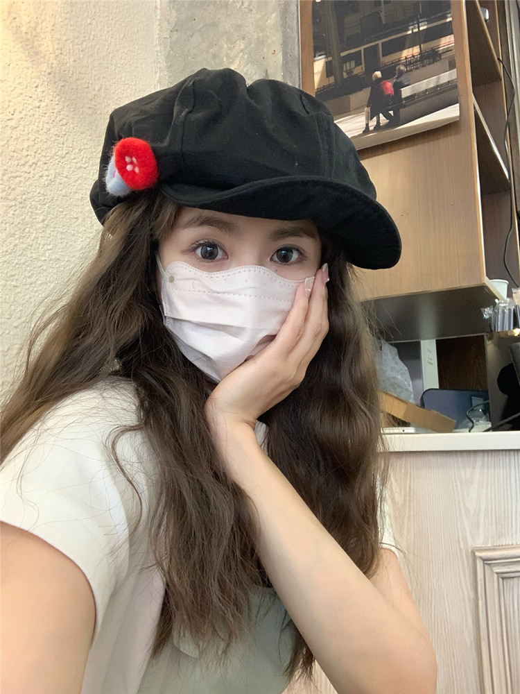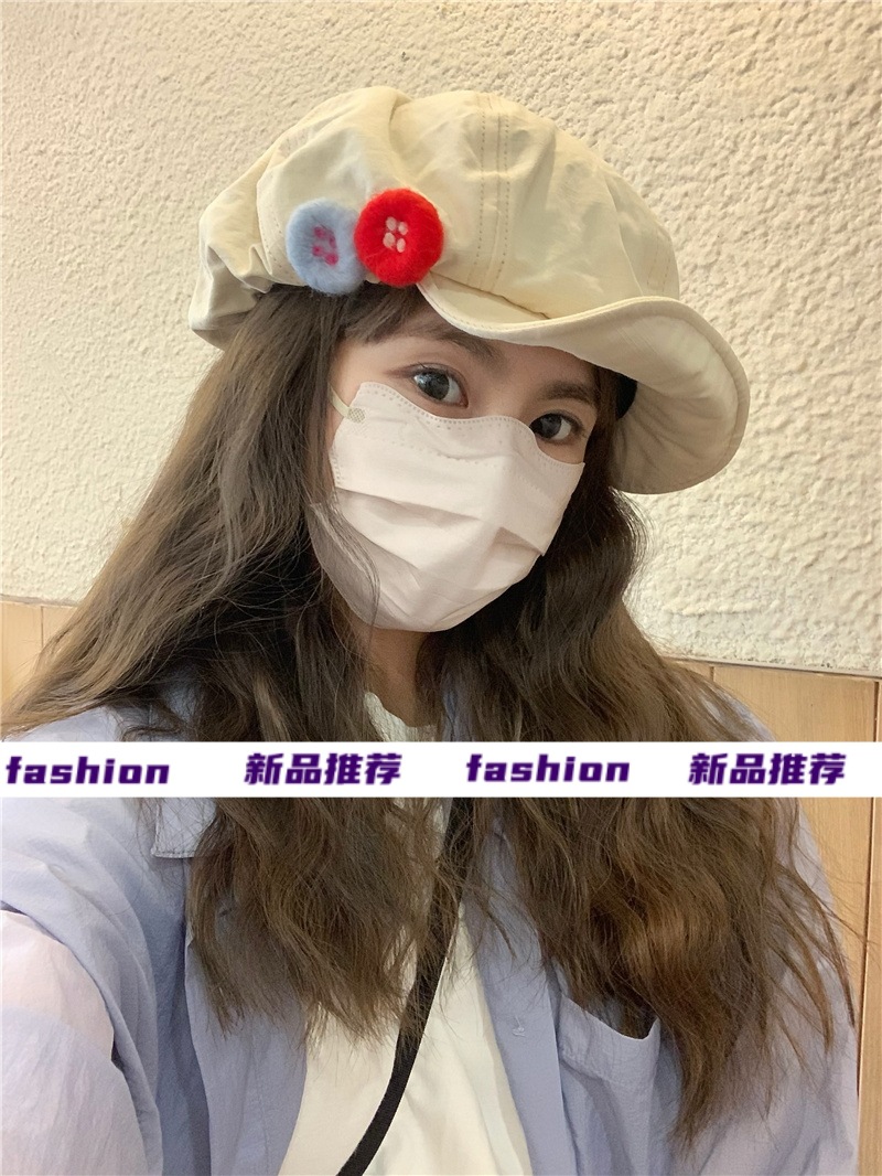 새로운 레트로 일본식 면 및 린넨 화가의 모자 어린이 버튼 큰 머리 흔들기 구름 팔각형 모자 얼굴 작은 버드 모자 트렌디스토어 가기