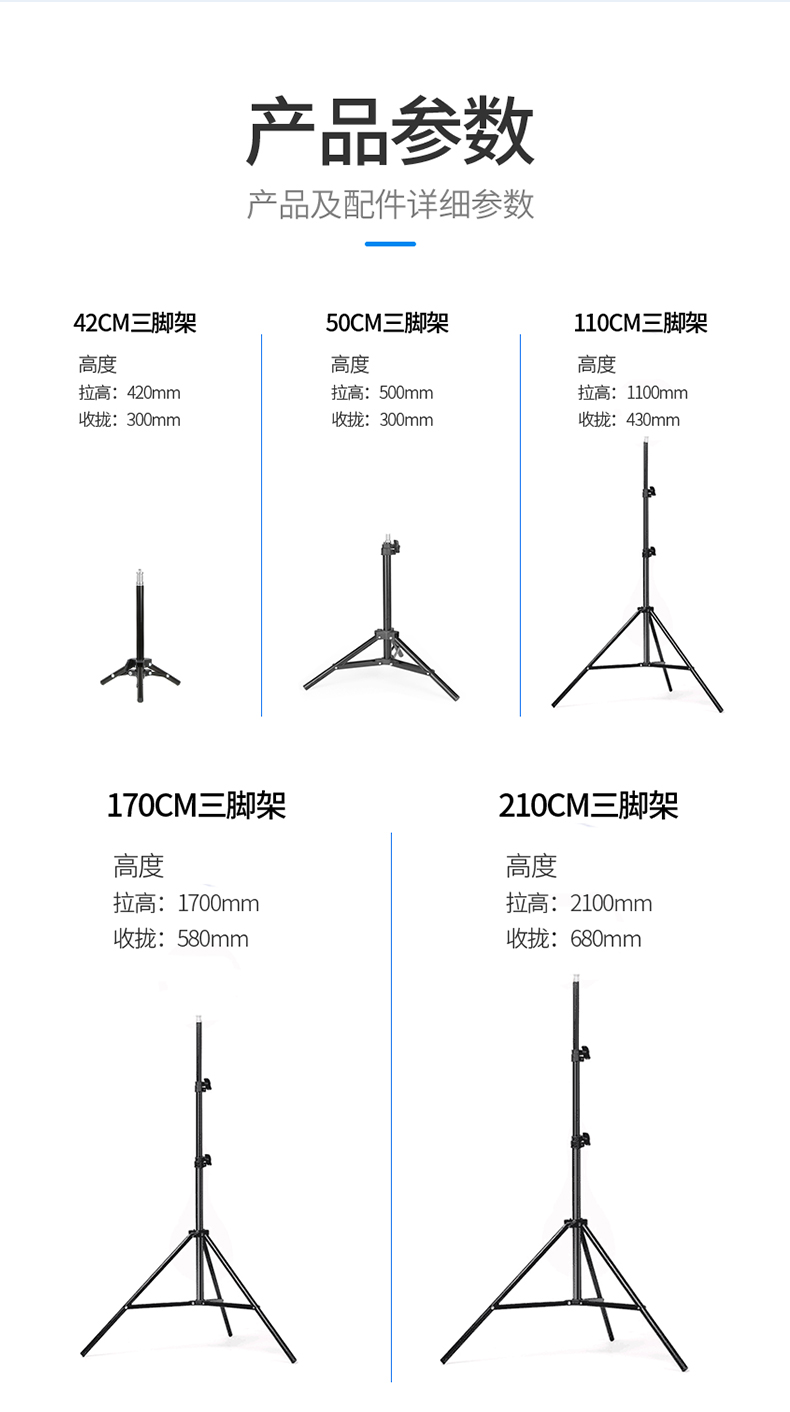 • 210CM 삼각대 + 36CM 필 라이트 + 범용 호스 클램프