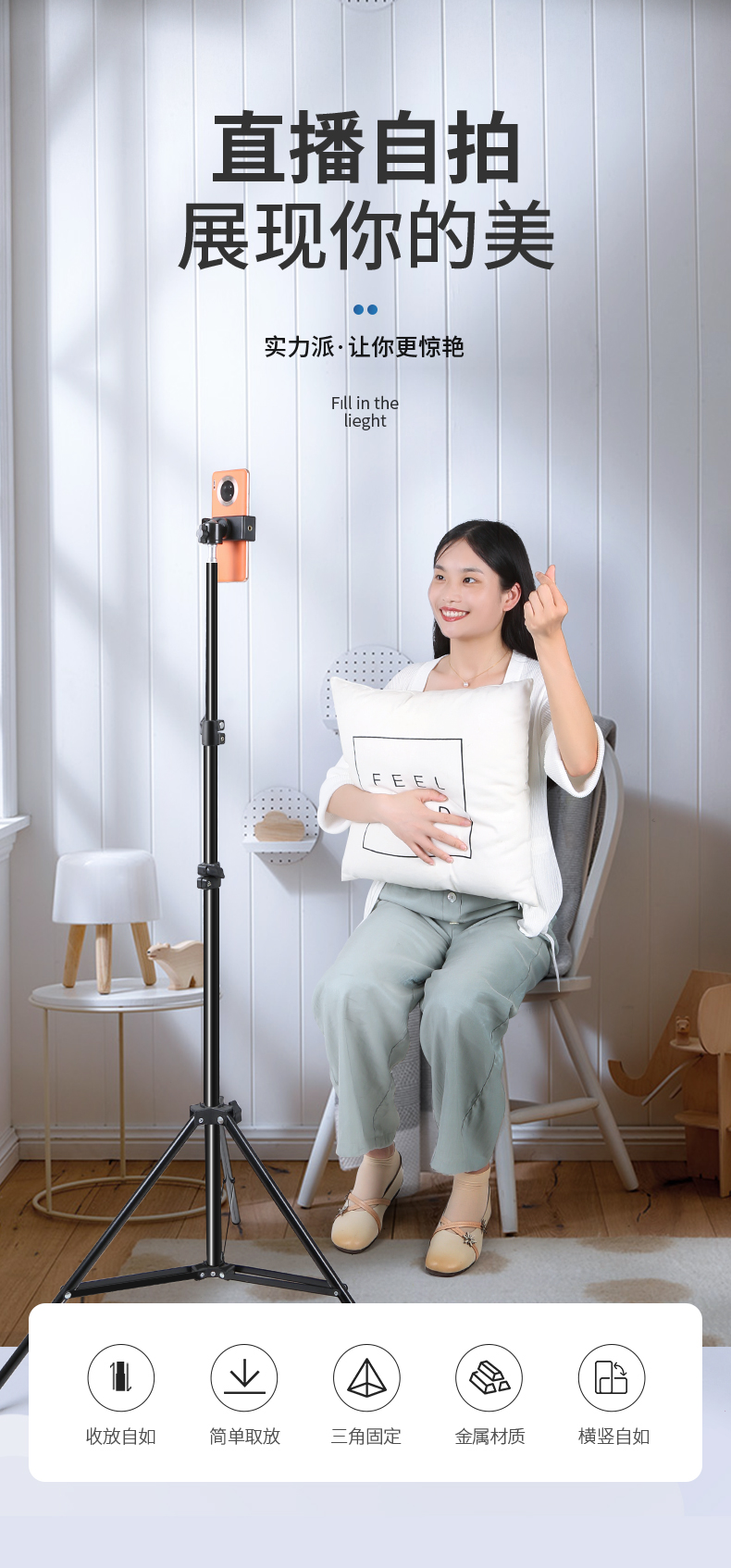 휴대 전화 삼각대 카메라 삼각대 라이브 삼각대 스탠드 바닥부터 바닥까지 촬영 홈 셀프 사진로드 휴대용스토어 가기