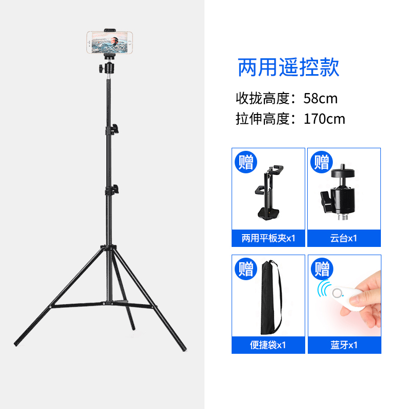 • 170CM 삼각대 + 미니 뷰티 램프 + 블루투스 셀카 + 팬/틸트 + 휴대폰 클립 + 휴대용