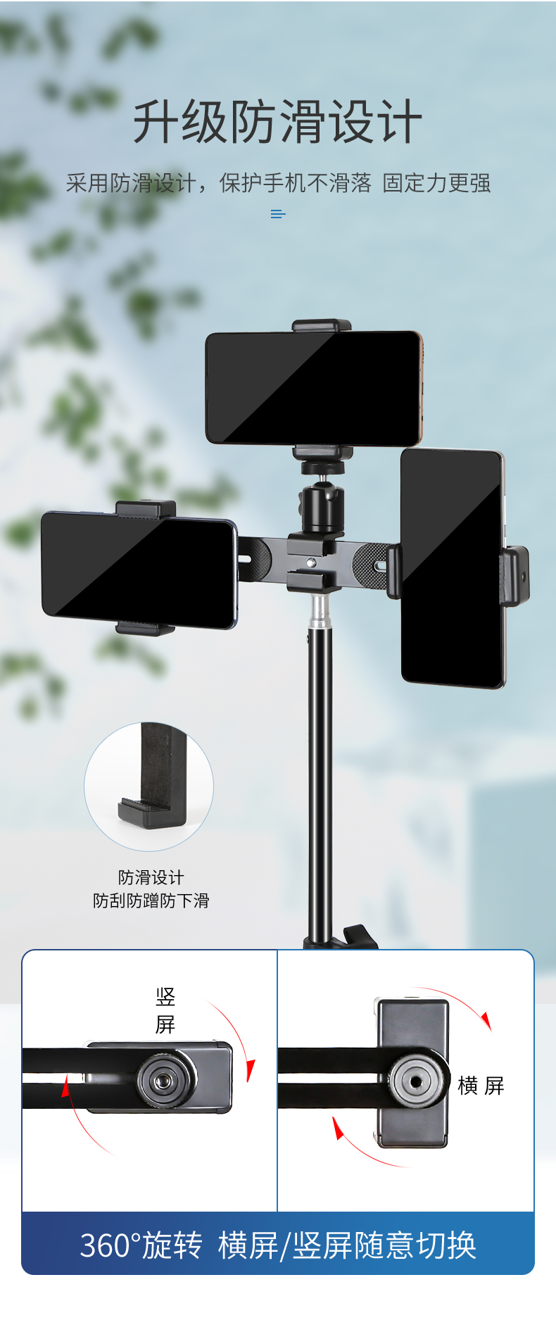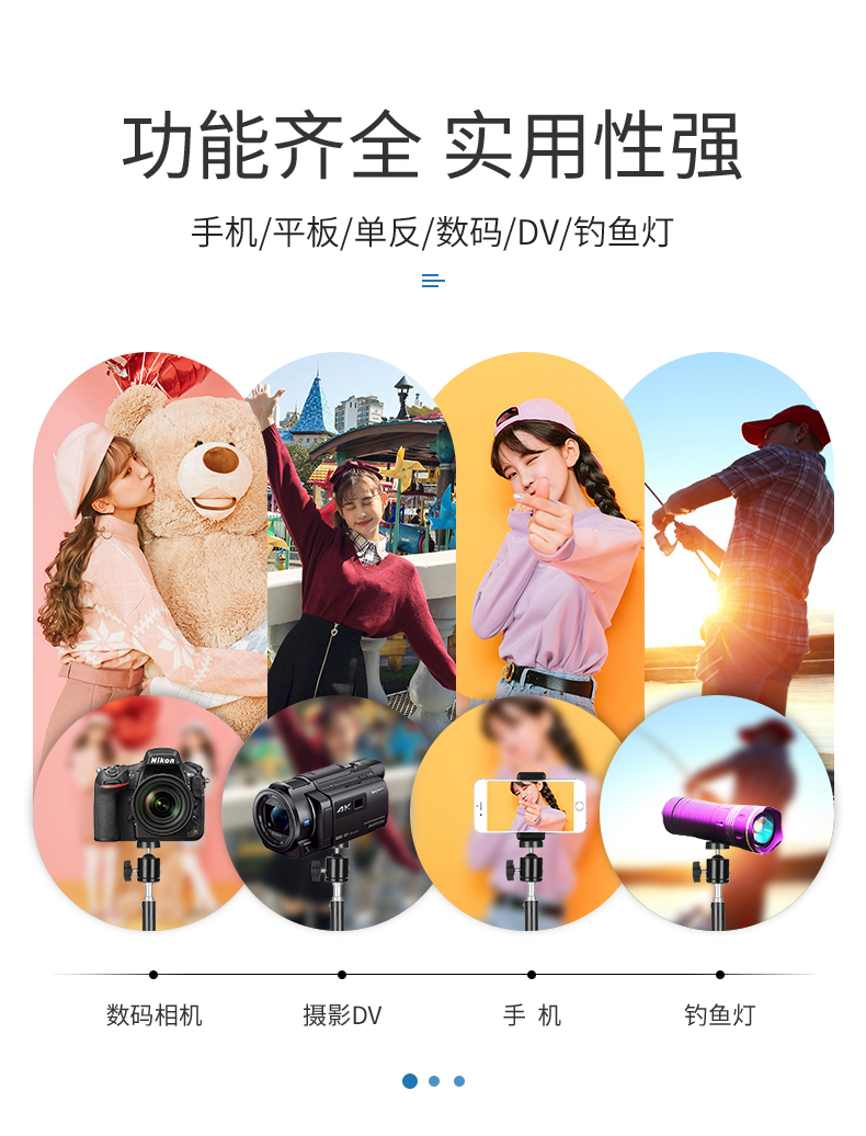 • [3개의 카메라 위치] 170CM 삼각대 + 팬/틸트 + 휴대폰 클립 + 휴대용 가방
