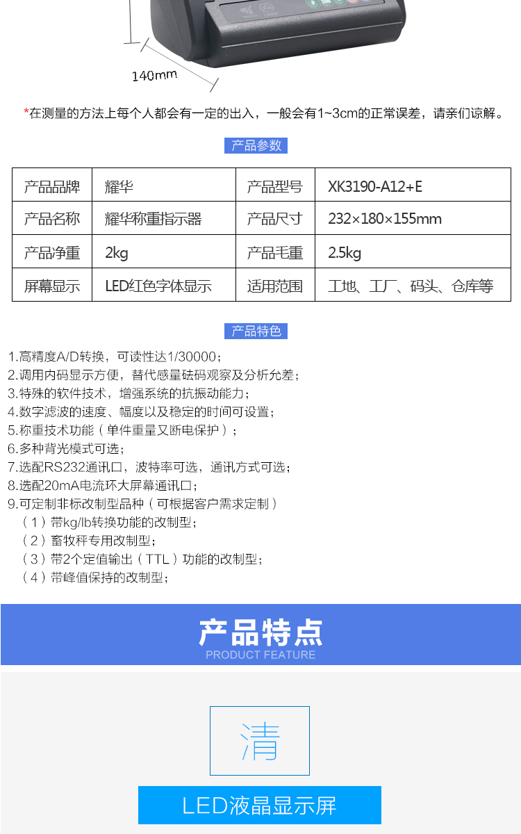 상하이 Yaohua XK3190-A12 E 계측 계량 디스플레이 소형 계량 측정기 전자 규모 컴퓨터
