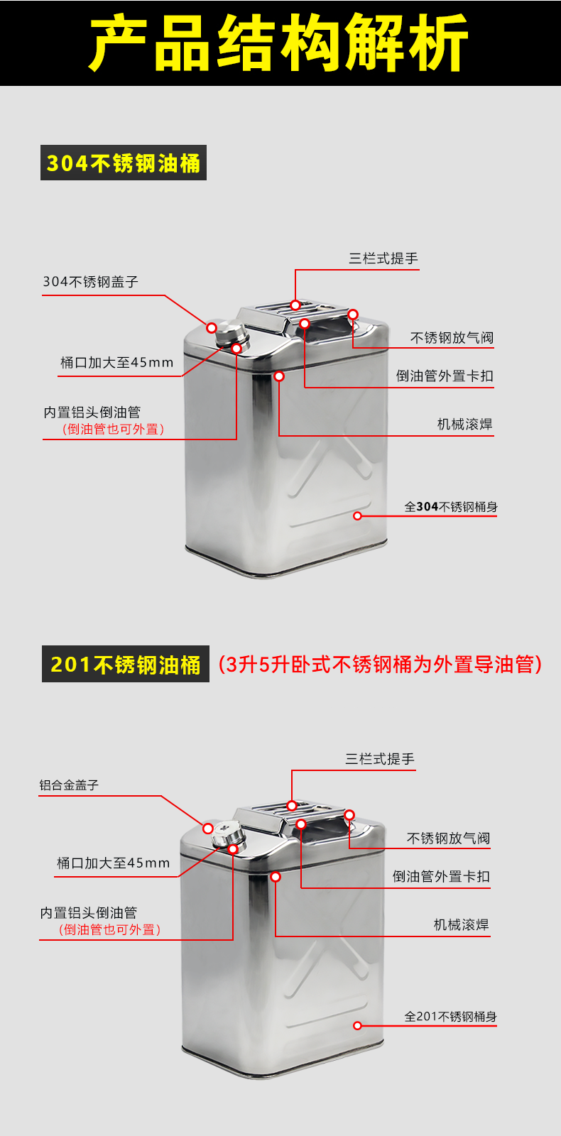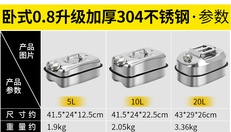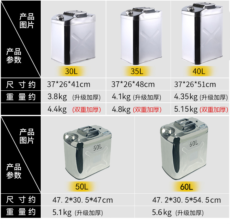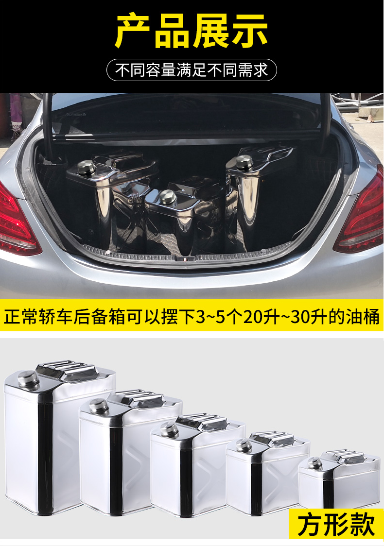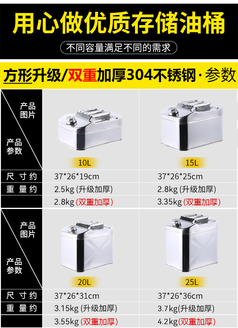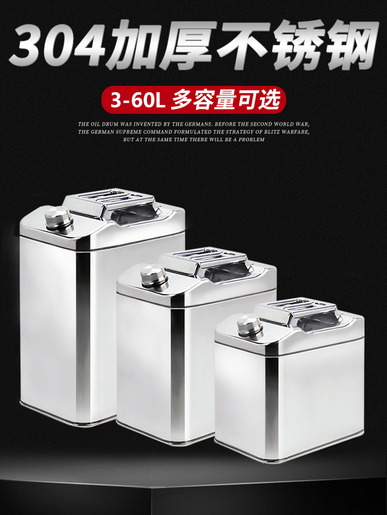 304 스테인레스 스틸 가솔린 배럴 30 리터 20 리터 10 리터 디젤 오일 포트 연료 보급 배럴 두꺼운 휴대용 자동차 예비 연료 탱크