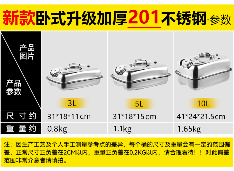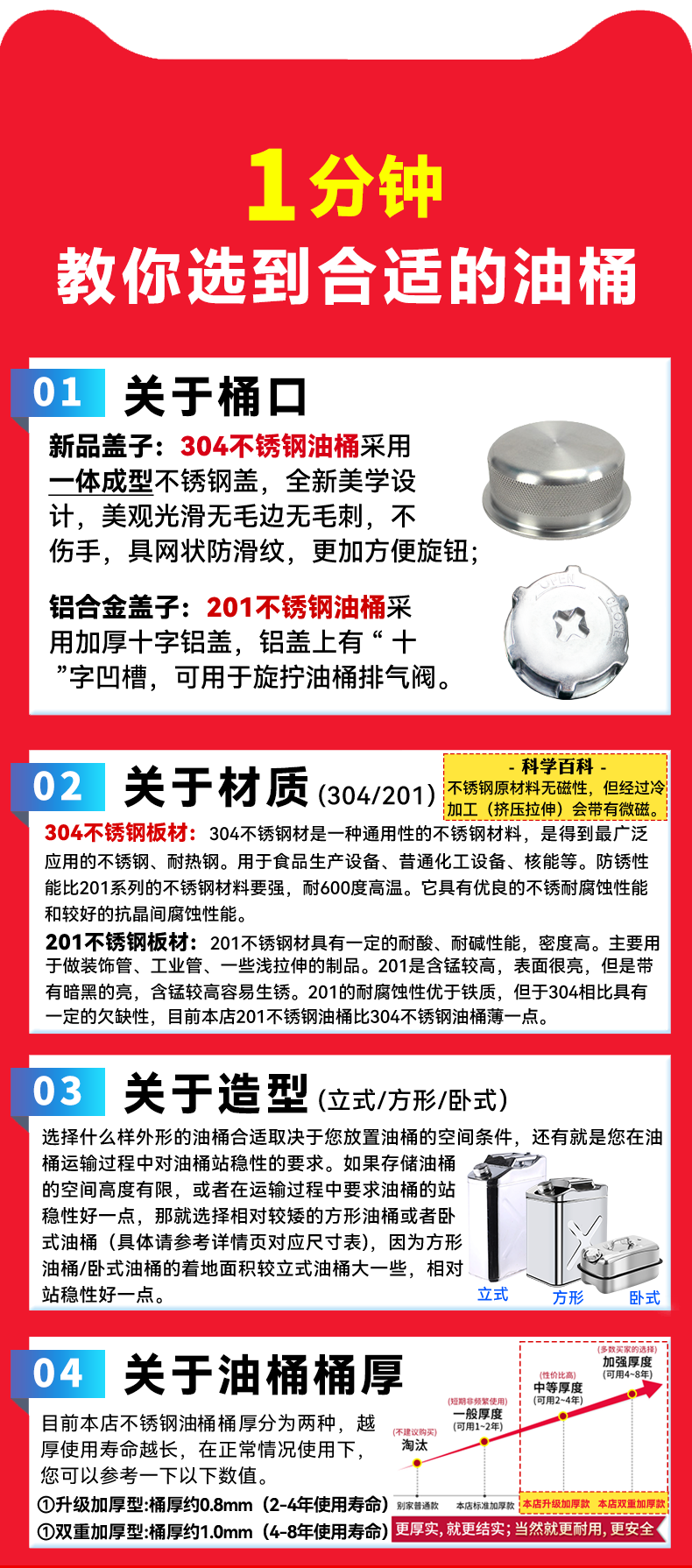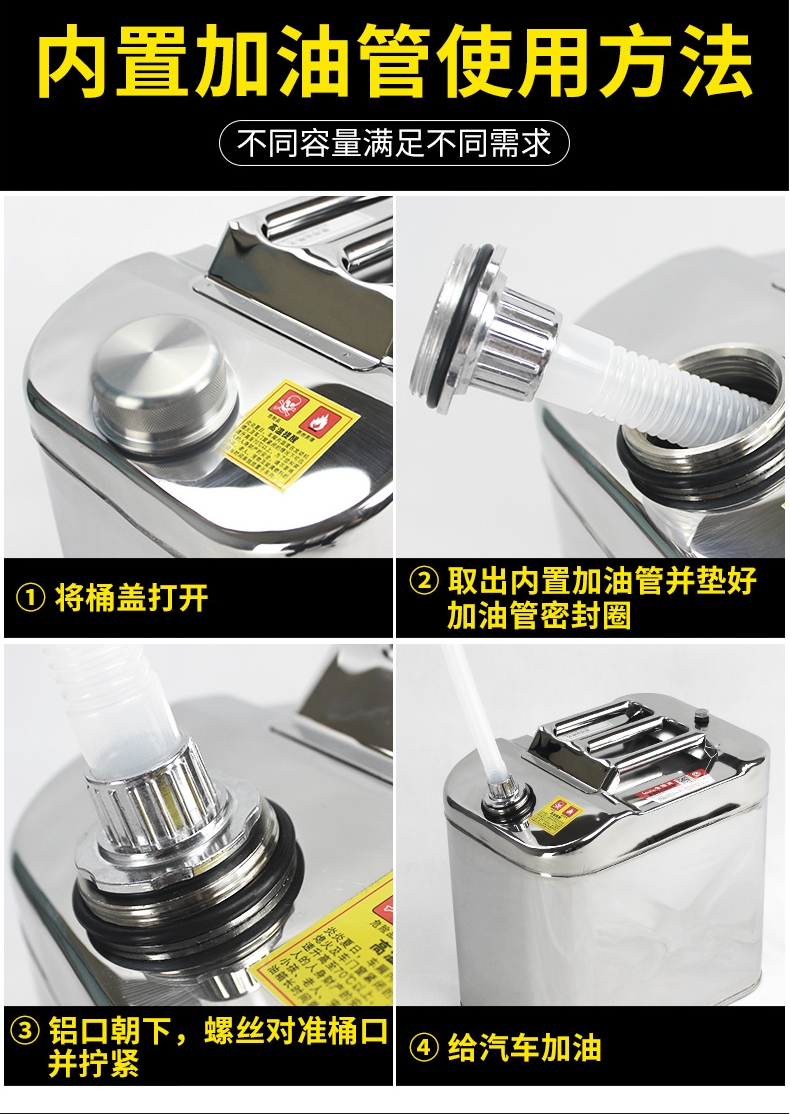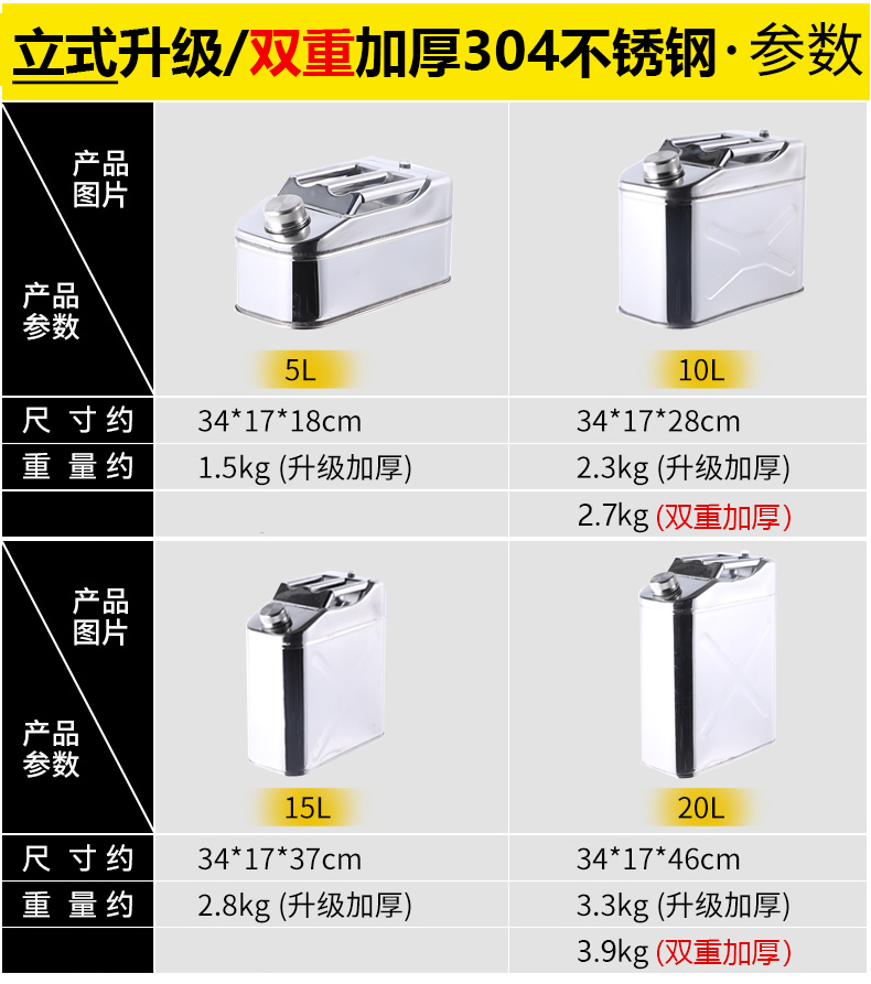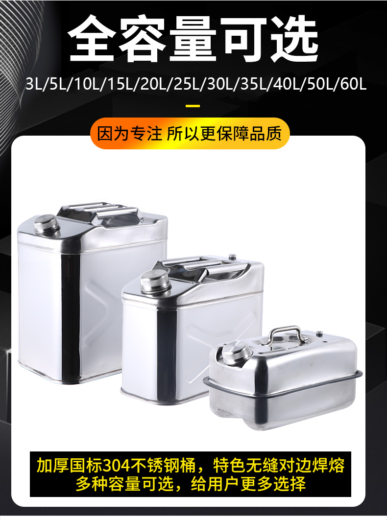 304 스테인레스 스틸 가솔린 배럴 30 리터 20 리터 10 리터 디젤 오일 포트 연료 보급 배럴 두꺼운 휴대용 자동차 예비 연료 탱크스토어 가기