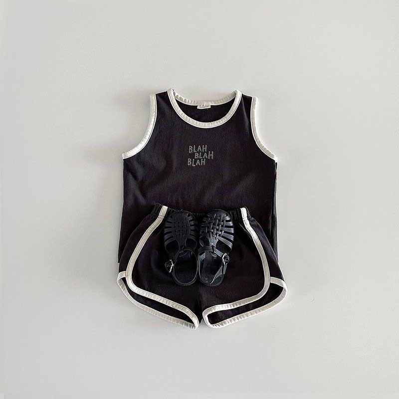 Ins24 한펑 아동복 여름 순면 소년과 소녀 어린이 면 부드러운 피부 친화적 인 베스파 티셔츠 반바지 분할 세트