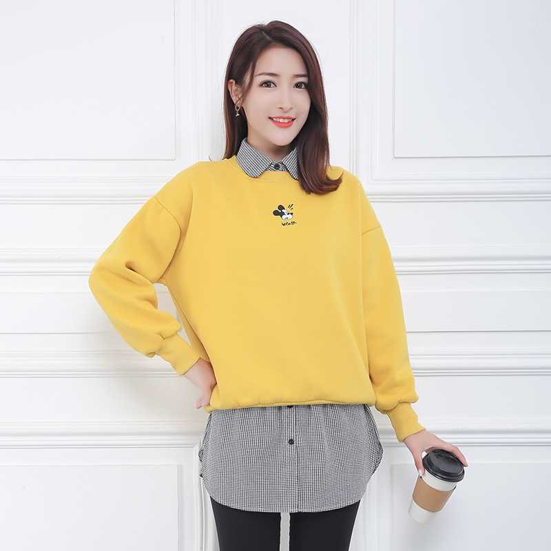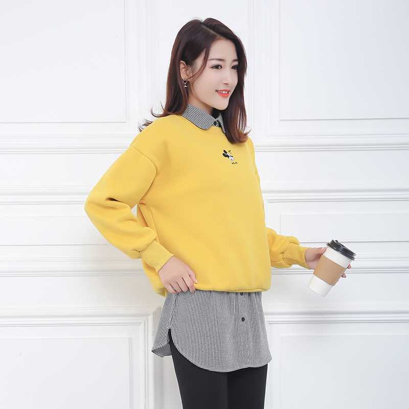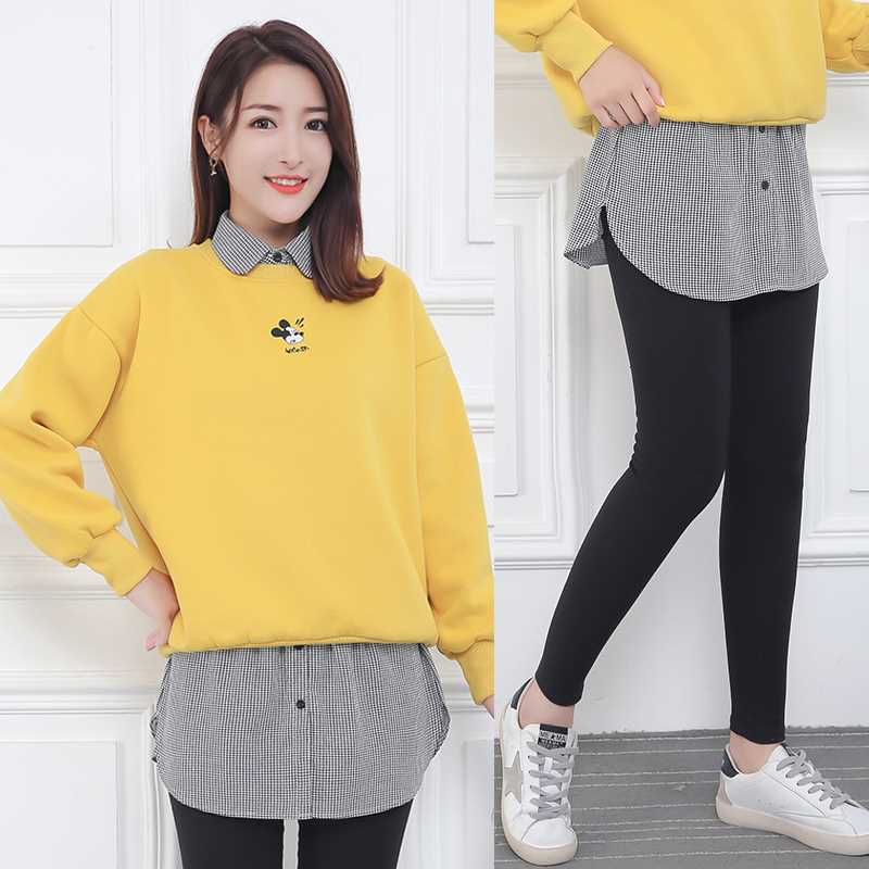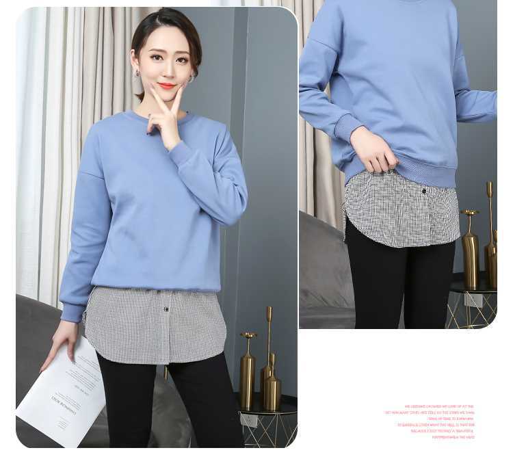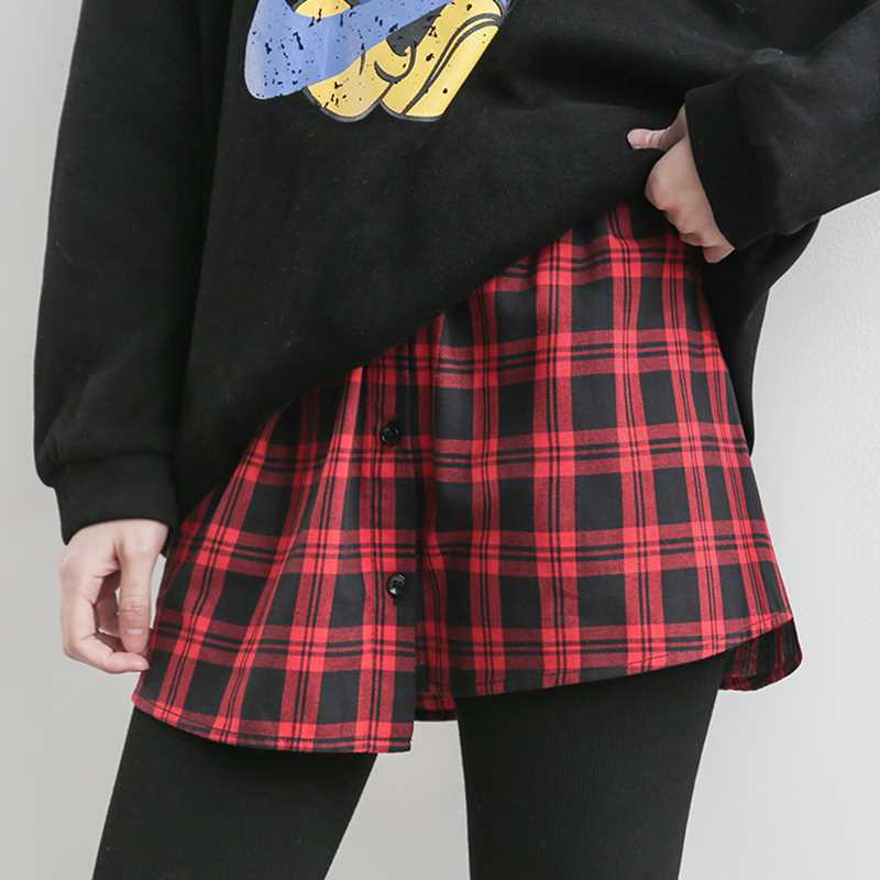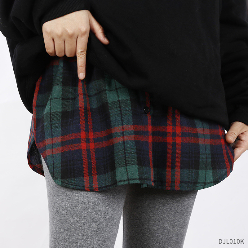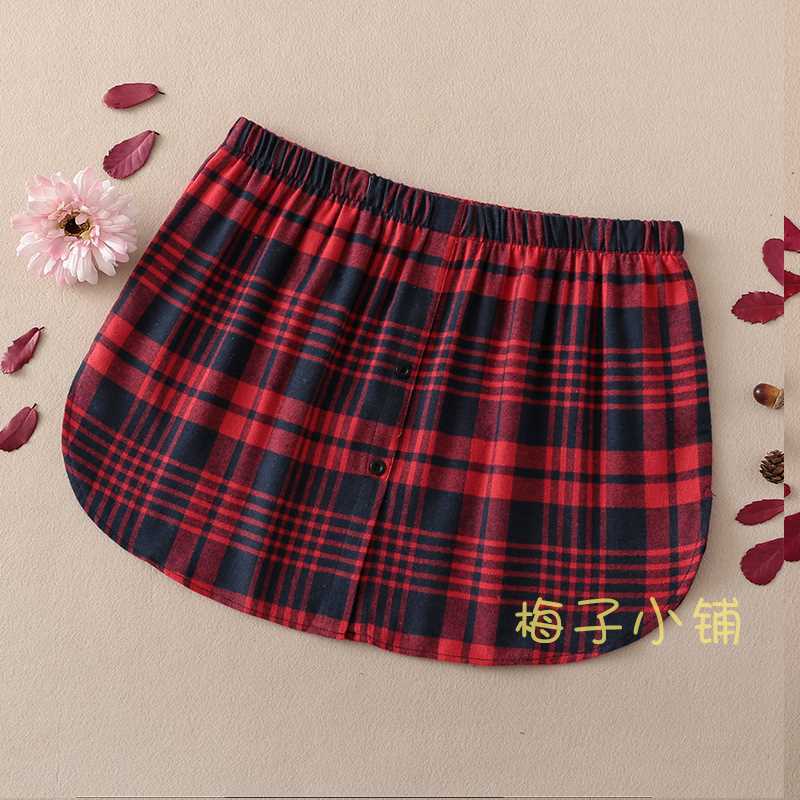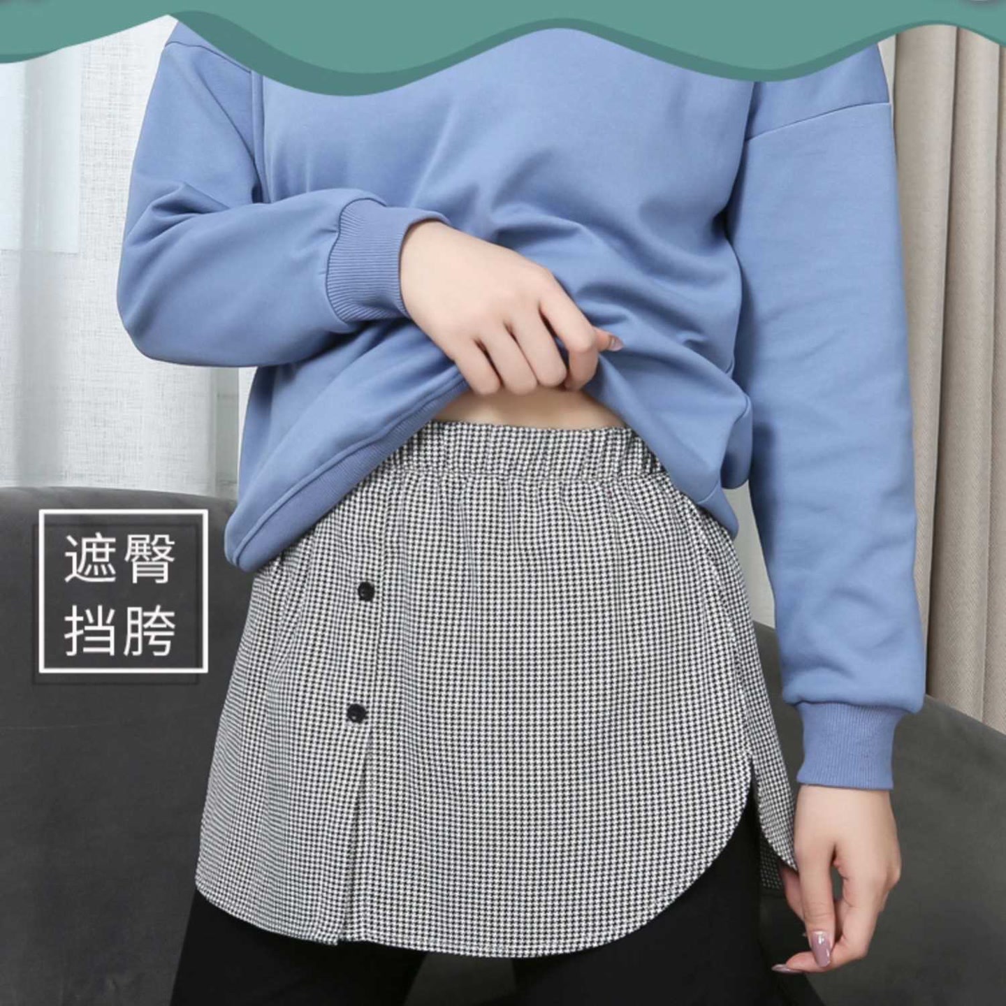 작은 방귀 덮고있는 커튼 내부 스커트 여성의 봄 가을과 겨울 코튼 힙을 가진 스웨터 쌓은베이스 격자 셔츠 가짜 Hem스토어 가기
