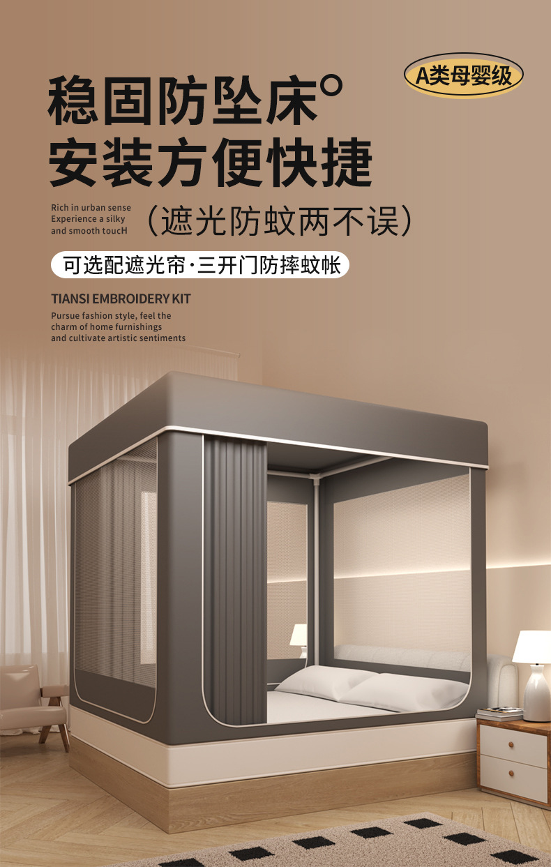 새로운 3 도어 침대 커튼 모기장 브래킷 공주 침대 맨틀 그늘 천 커튼 통합 가구 전체 음영 무료 설치스토어 가기