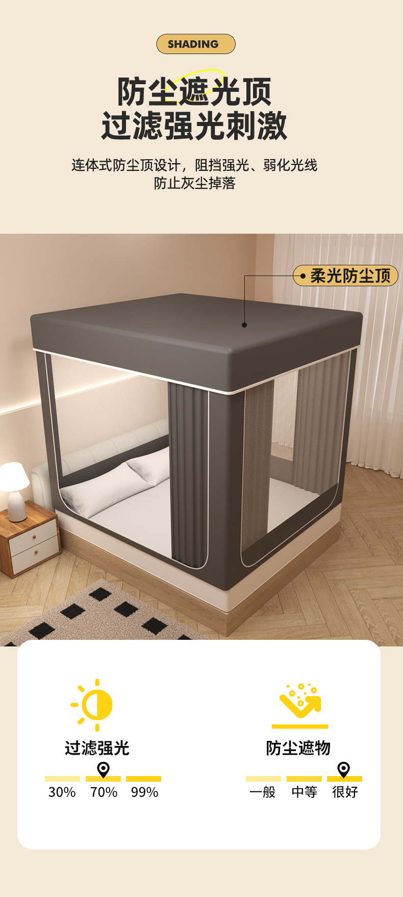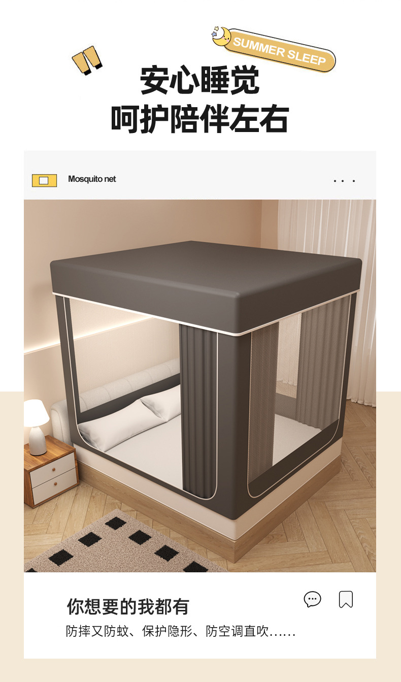 • 깊은 공간 회색 [정전 커튼] 침대 커튼 모기장 지원