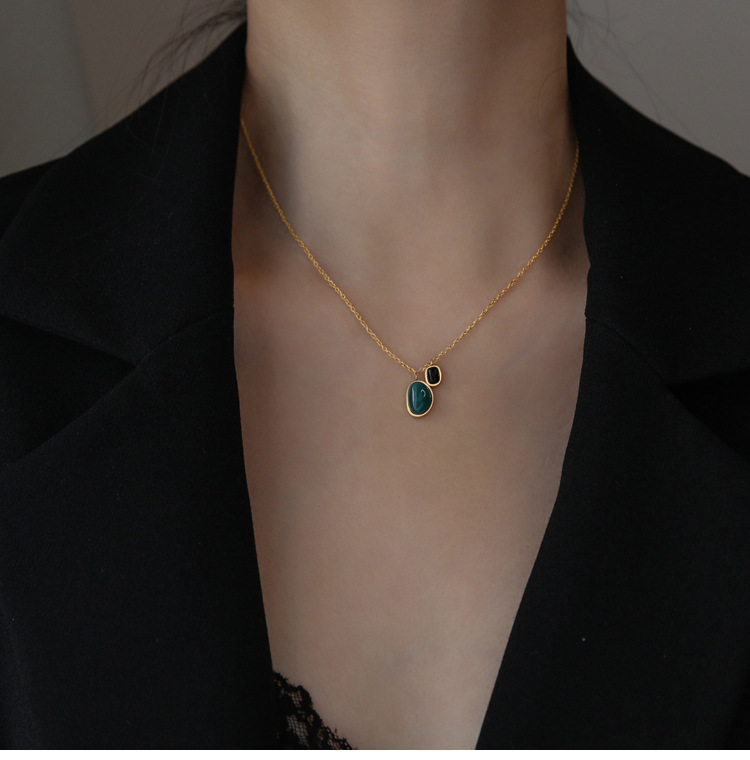 니치 라이트 럭셔리 디자인 센스 그린 블랙 오닉스 더블 펜던트 목걸이 여성용 쇄골 체인 고급 2024 새로운 유행 단순스토어 가기