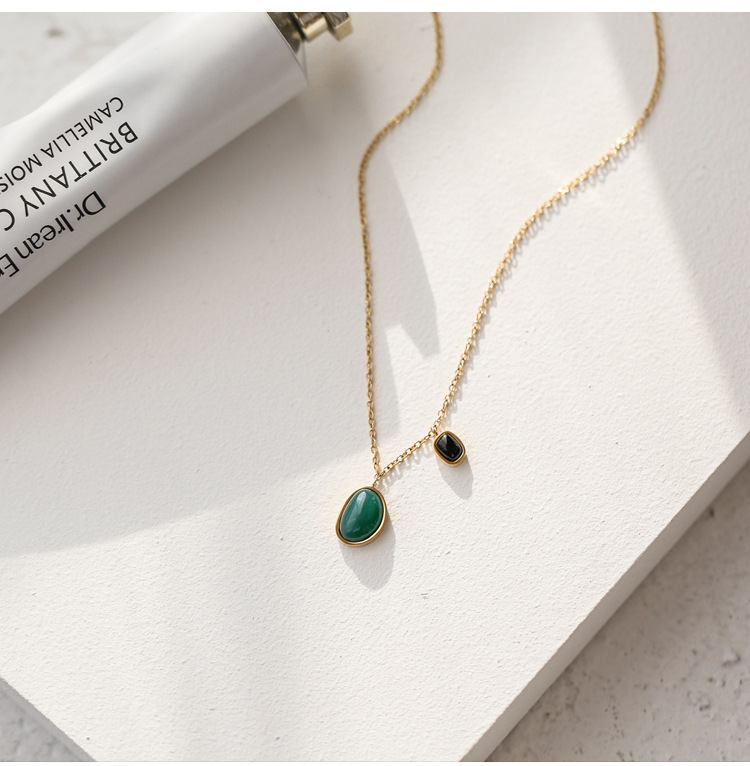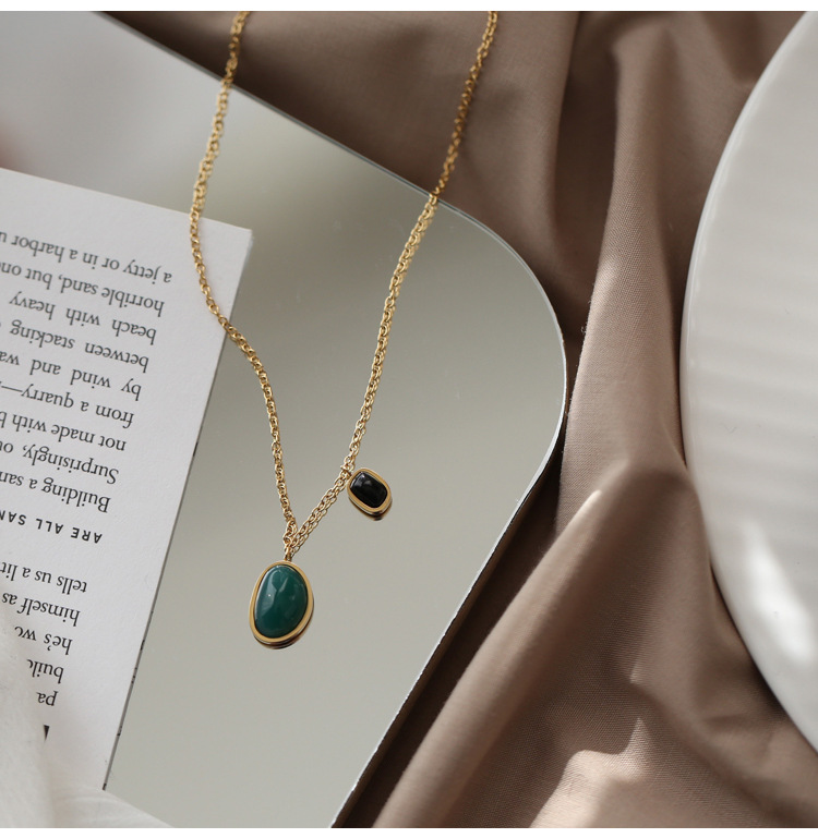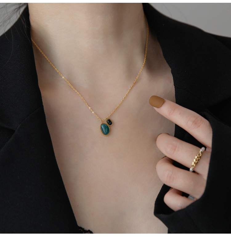 니치 라이트 럭셔리 디자인 센스 그린 블랙 오닉스 더블 펜던트 목걸이 여성용 쇄골 체인 고급 2024 새로운 유행 단순