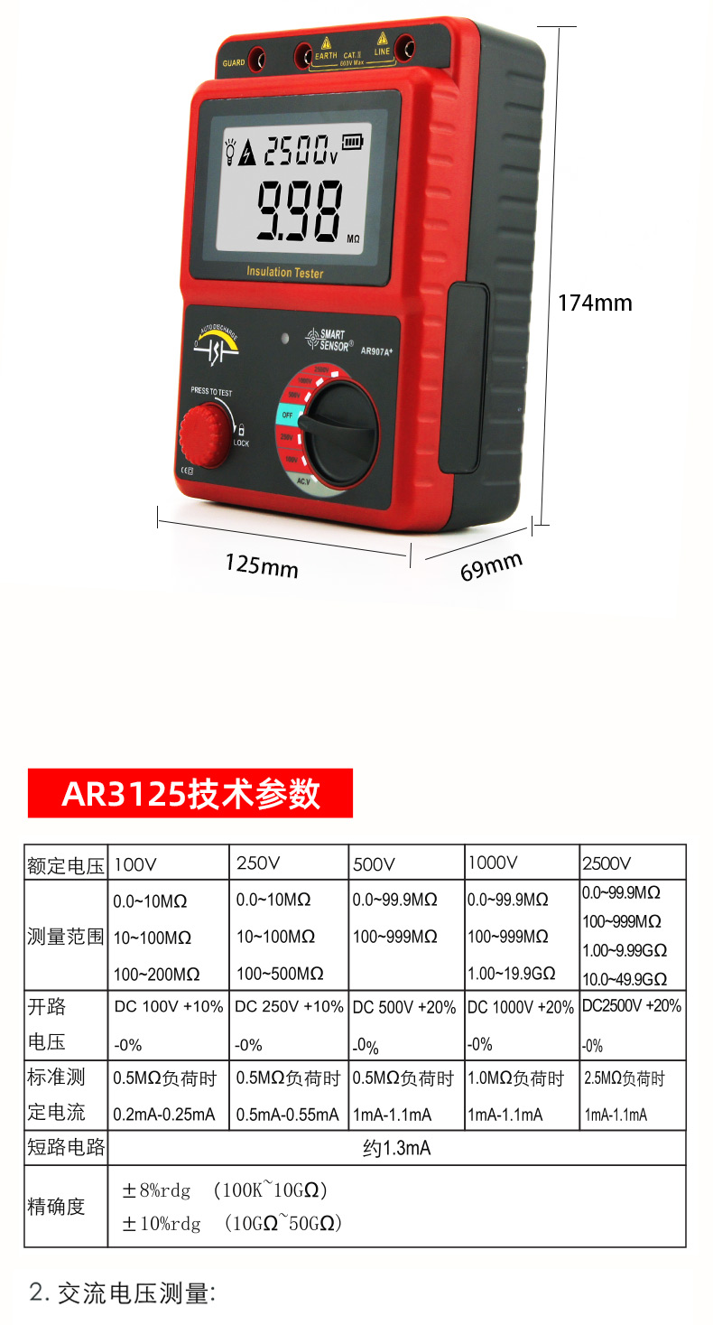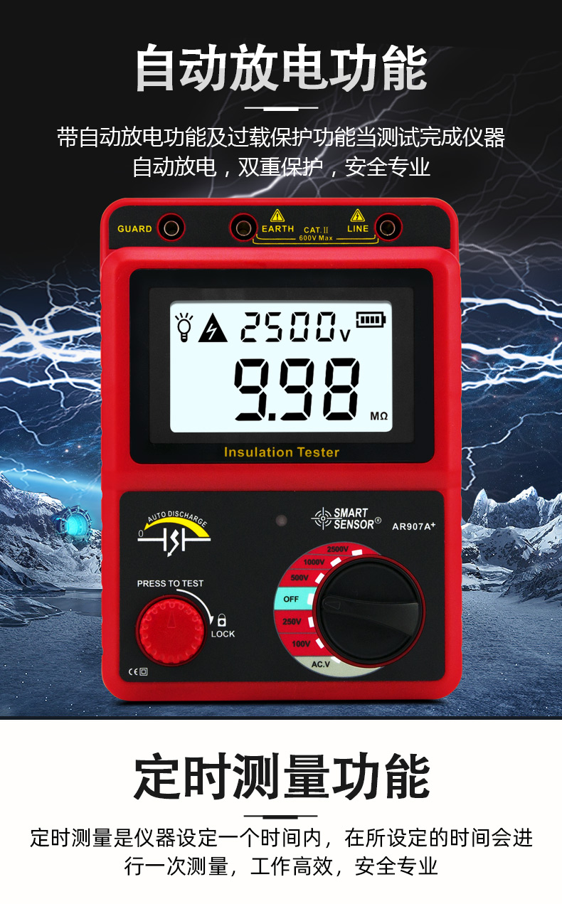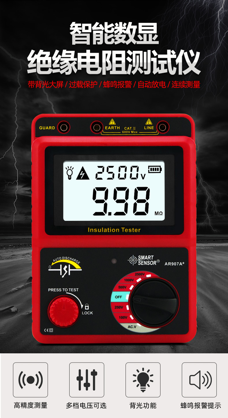 고전압 디지털 메고름 미터 절연 저항 테스터 HD 대형 스크린 저항 미터 디지털 방식으로 쉐이크 미터 1000V스토어 가기