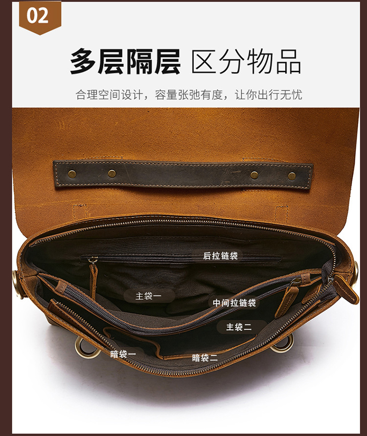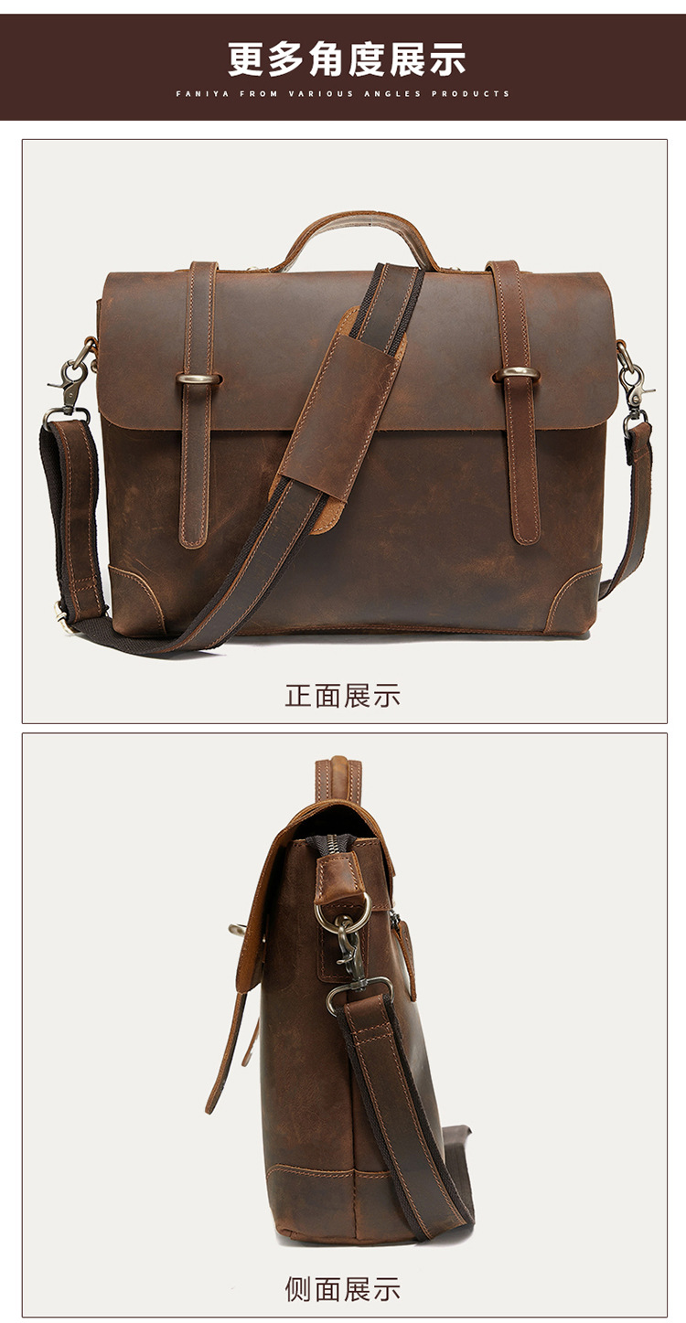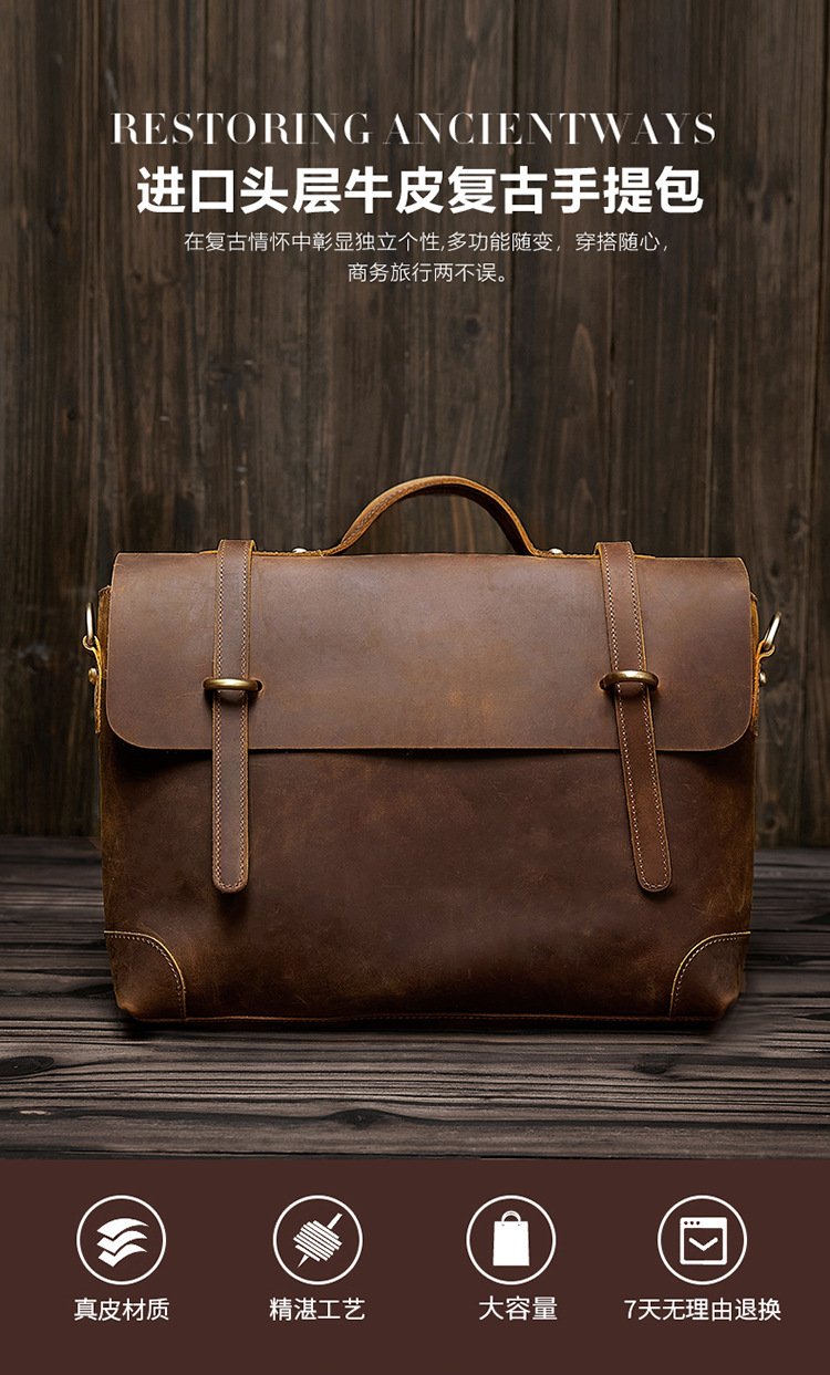 빈티지 우체국 미친 말 가죽 서류 가방 통근 어깨 핸드백 탑 레이어 Cowhide 정품 가죽 남성 크로스 바디 백 프리미엄 센스스토어 가기