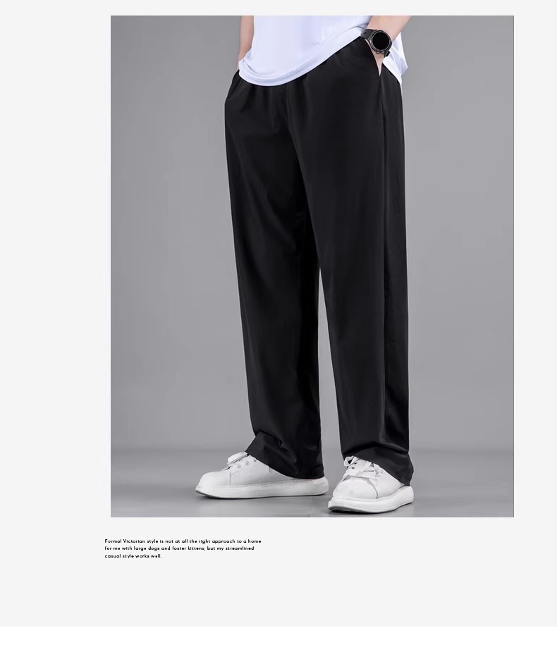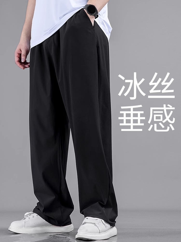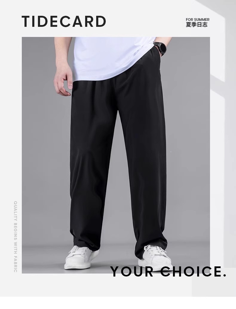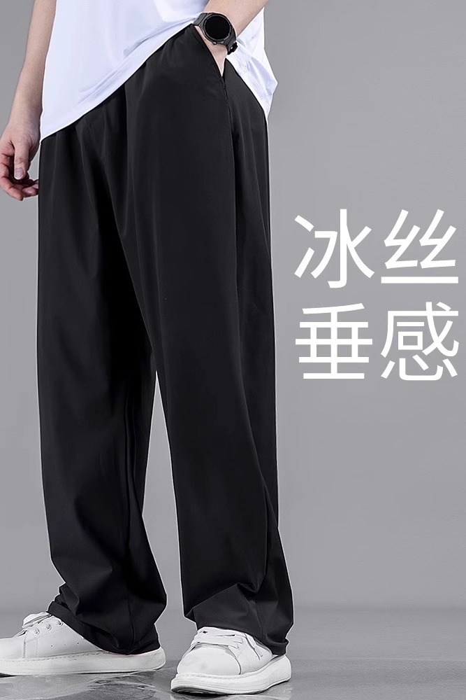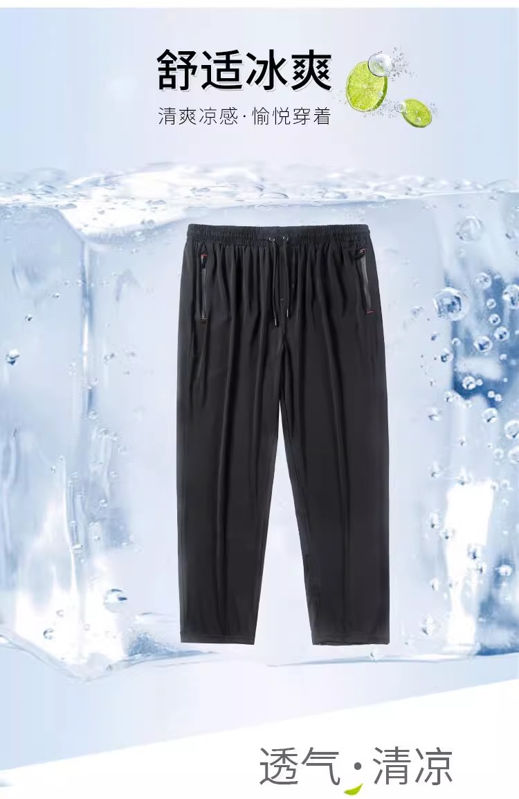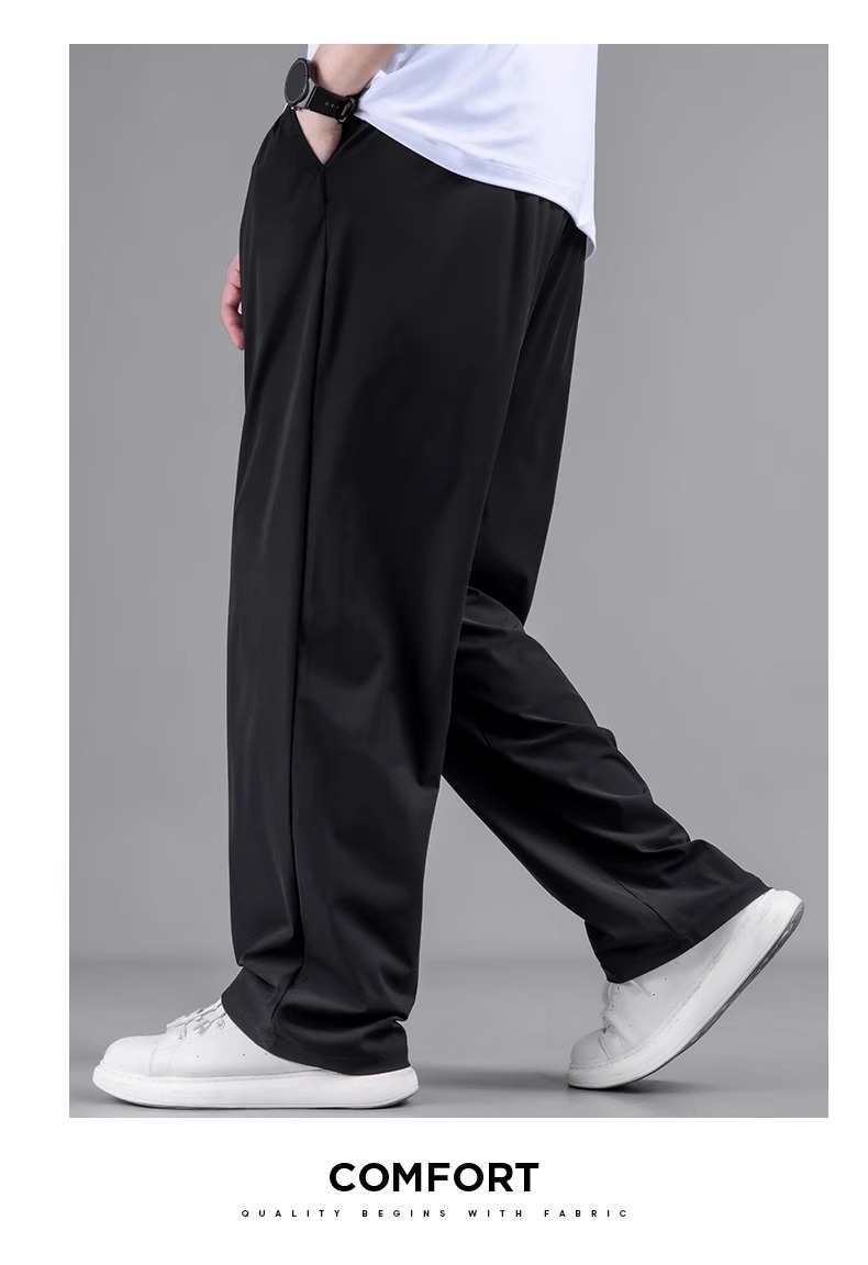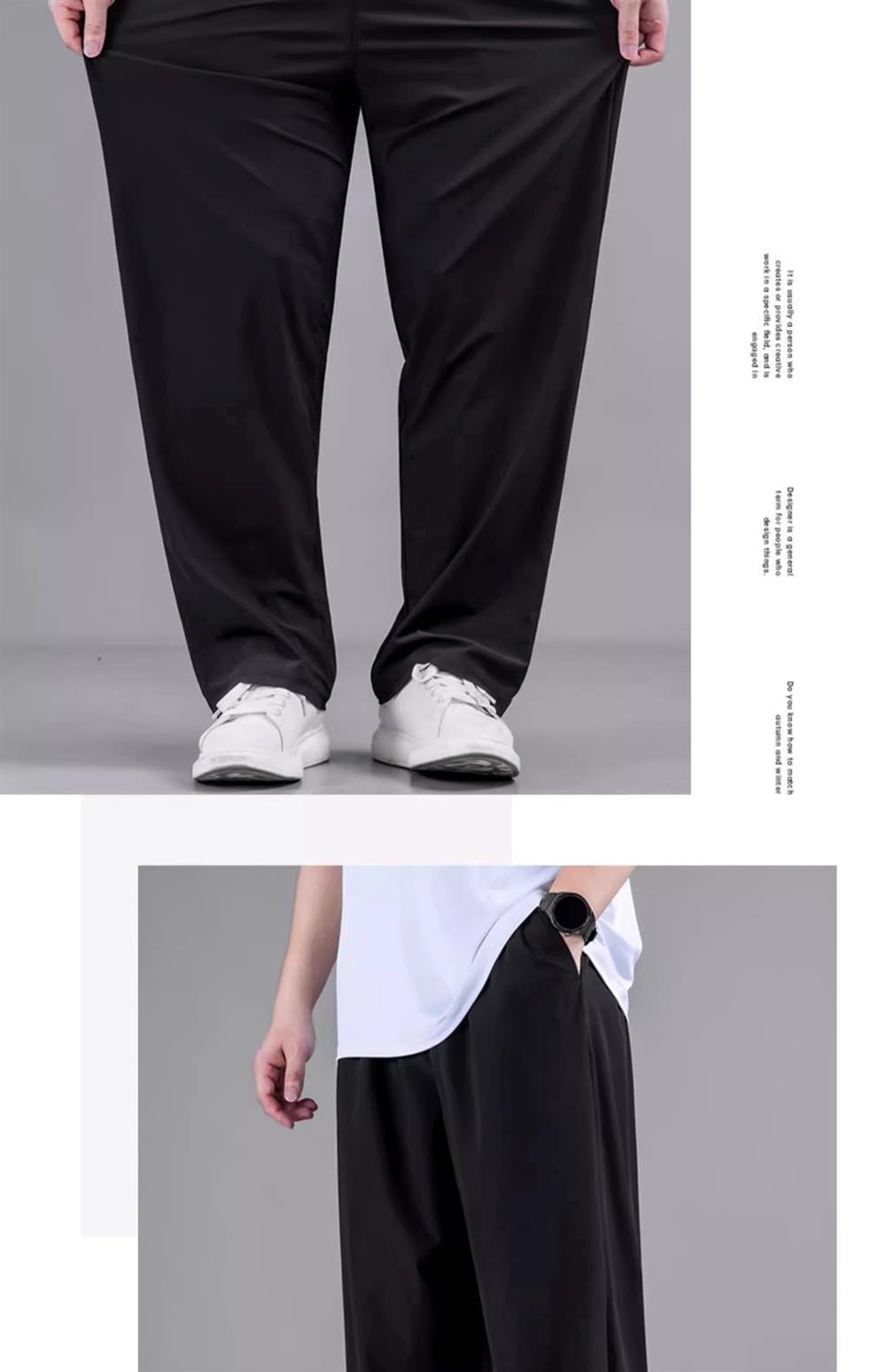 플러스 사이즈 캐주얼 아이스 실크 바지 남자 여름 얇은 스트레이트 느슨한 통기성 스포츠 바지 뚱뚱한 플러스 크기의 빠른 건조 바지스토어 가기