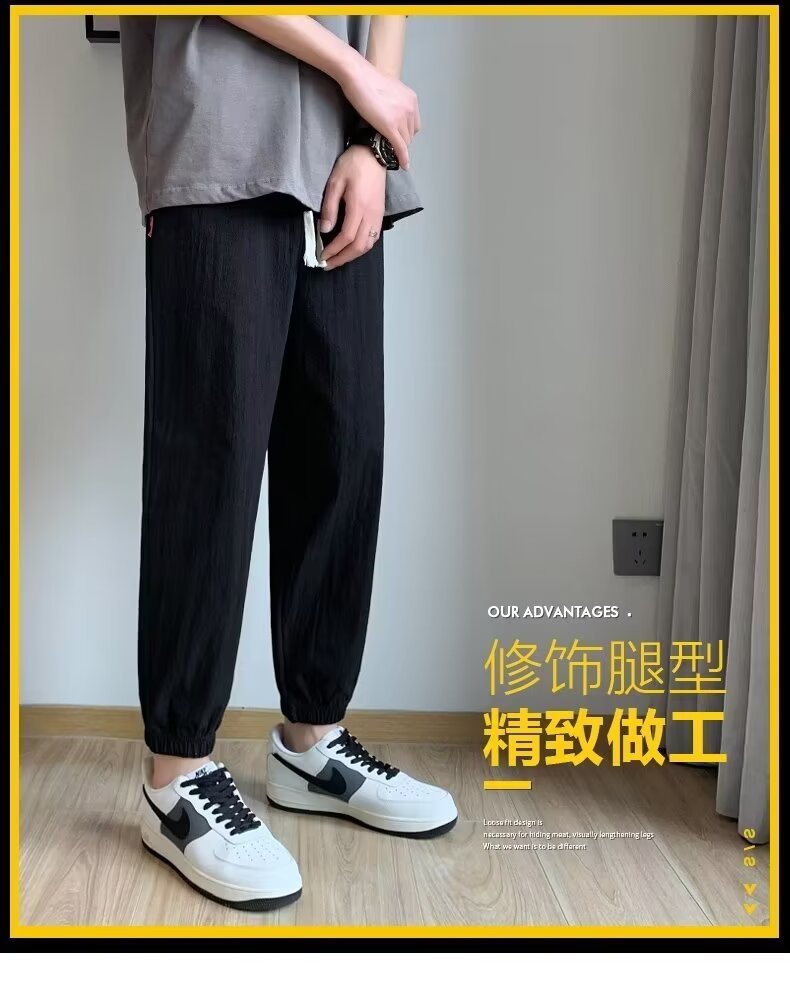 긴 얼음 실크 캐주얼 바지 남자의 얇은 유행 브랜드 느슨한 빠른 건조 스포츠 바지 여름 새로운 통기성 트렌디 한 발목 바지