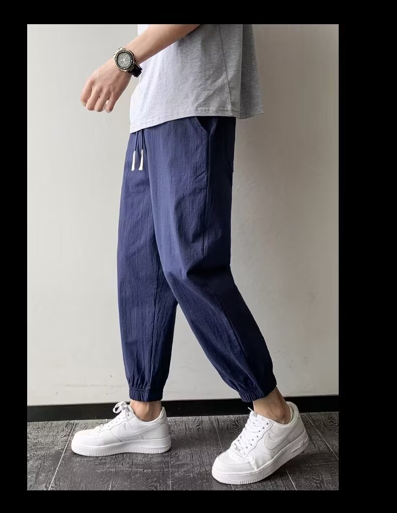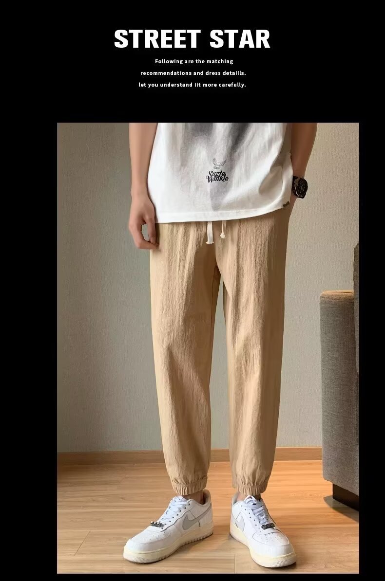 긴 얼음 실크 캐주얼 바지 남자의 얇은 유행 브랜드 느슨한 빠른 건조 스포츠 바지 여름 새로운 통기성 트렌디 한 발목 바지스토어 가기
