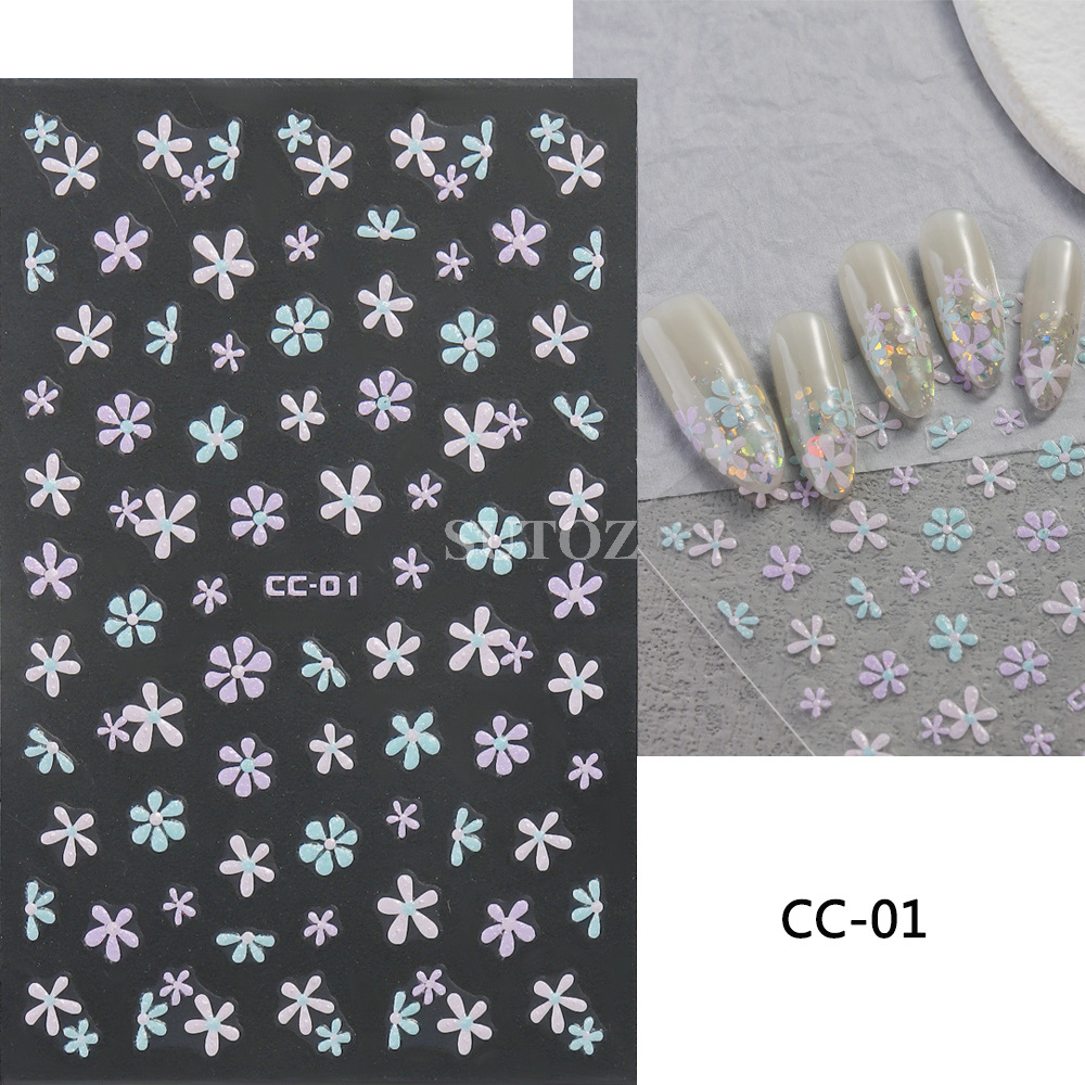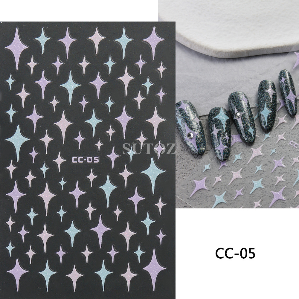 2024 새로운 네일 아트 스티커 여름 도파민 색 다섯개 별 사랑 꽃 네일 다시 접착 스티커스토어 가기