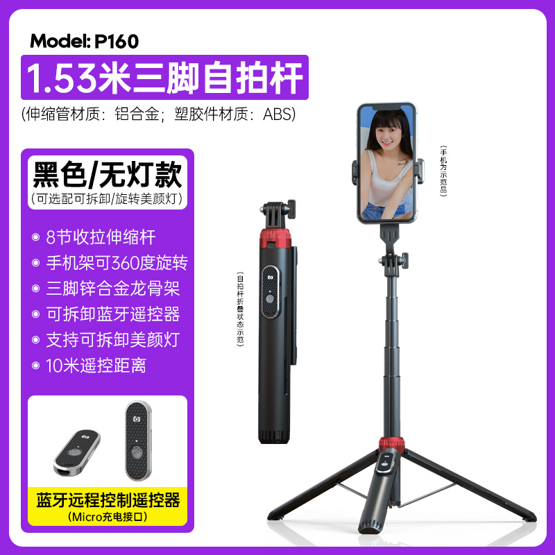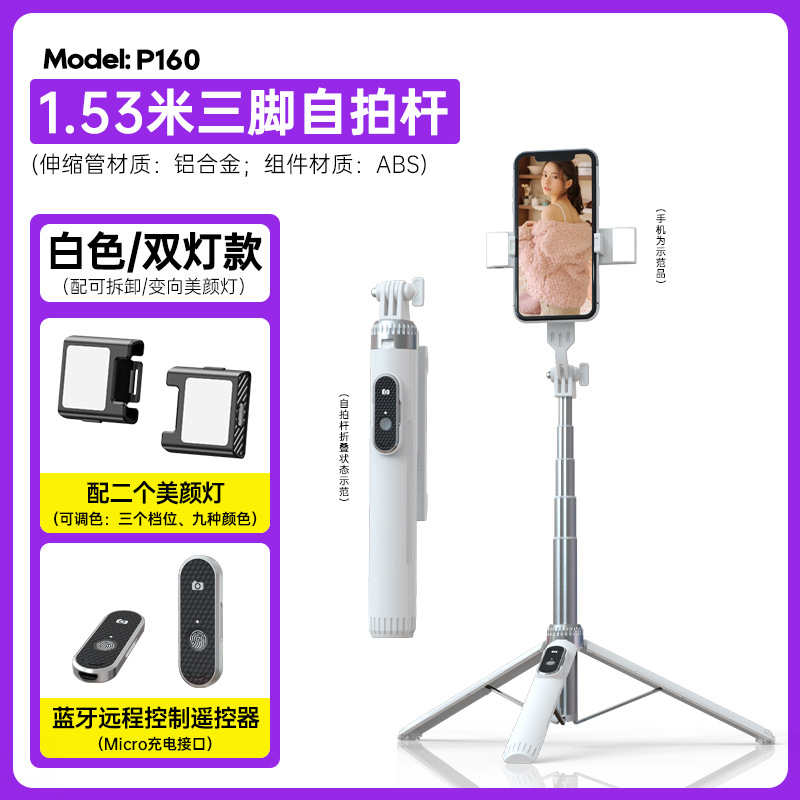 P160手机蓝牙自拍杆双补光灯手持稳定器落地伸缩杆直播支架三脚架P160手机蓝牙自拍杆双补光灯手持稳定器落地伸缩杆直播支架三脚架P160手机