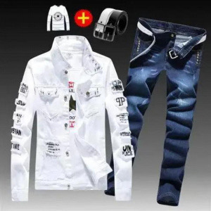 긴 바지를 입은 봄 가을 남자 데님 자켓 세트 한국 유행 잘 생긴 자켓 남자 무료 배송스토어 가기