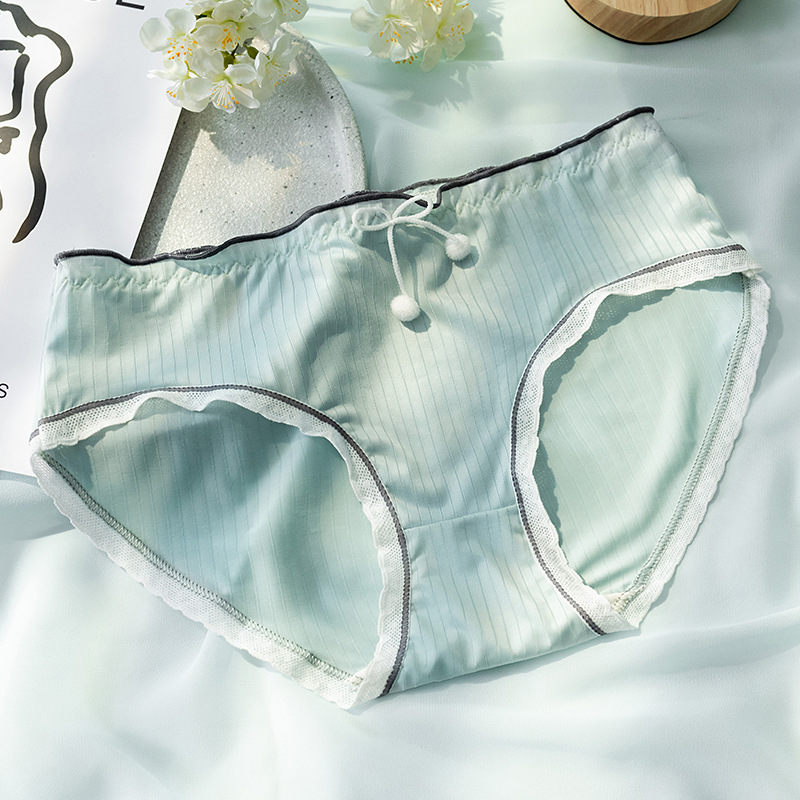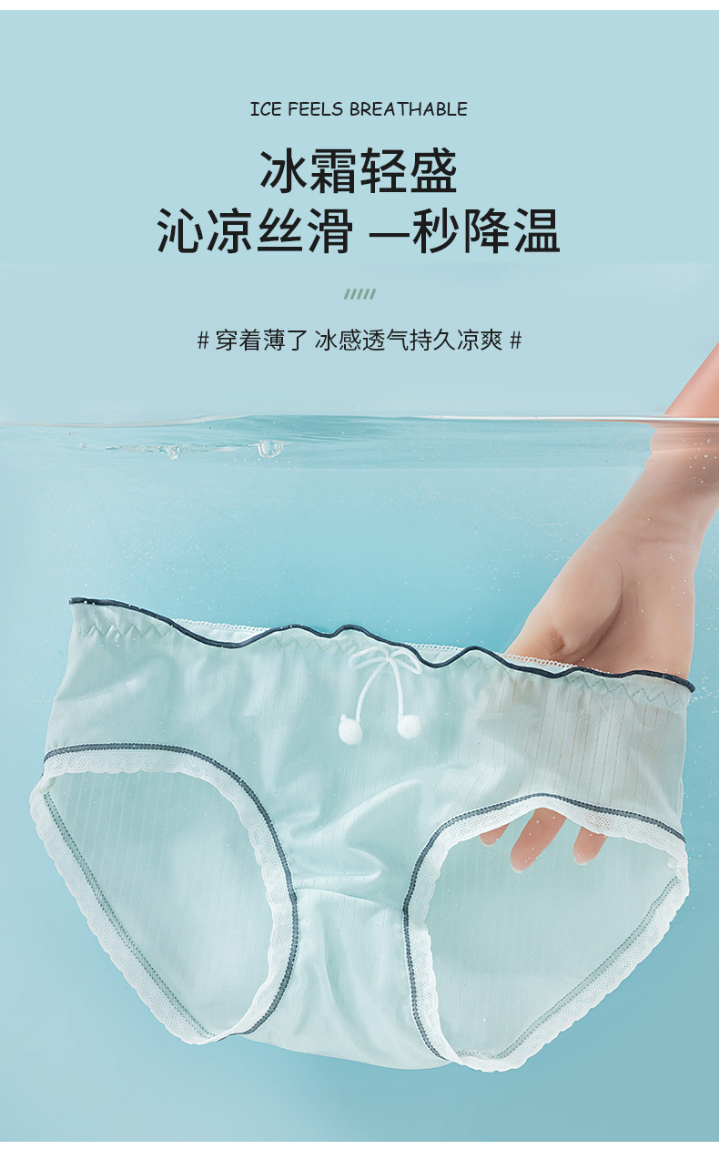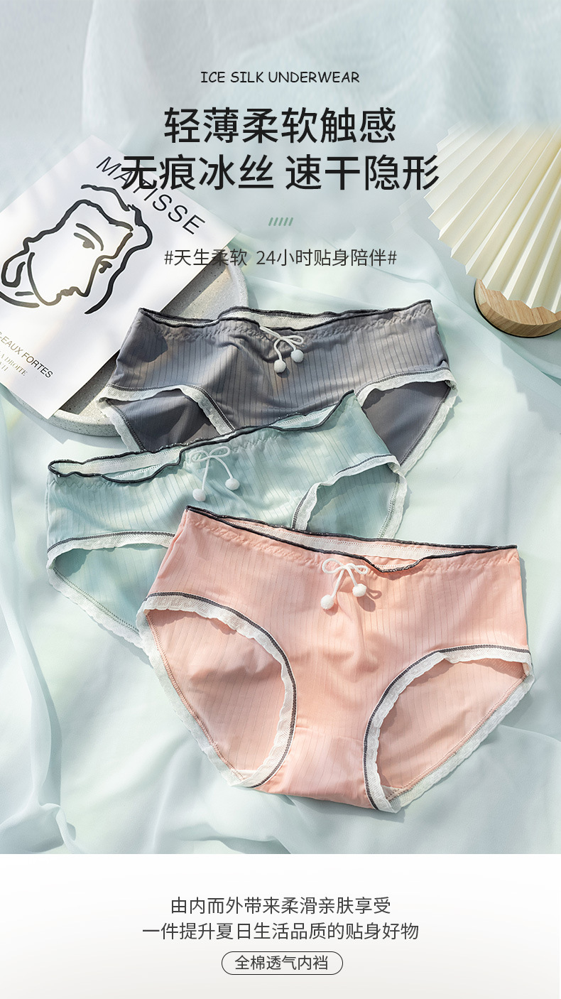 새로운 솔리드 컬러 아이스 실크 속옷 여성 미드 웨이스트 여름 초박형 통기성 퓨어 코튼 크로치 브리프 소녀와 학생스토어 가기