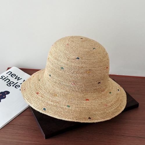 하이 퀄리티 고급 브레이드 라피 밀짚 모자 사랑 웨이브 도트 돔 큰 브림 태양 모자 선 스크린 모자 해변 태양 모자 접이식스토어 가기