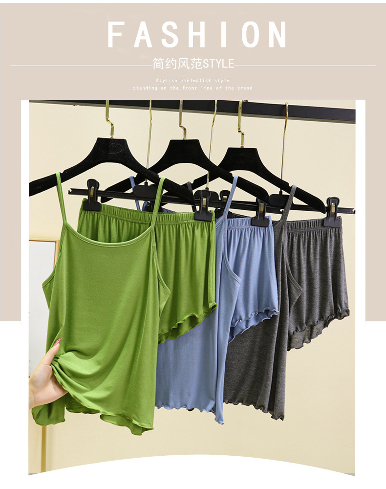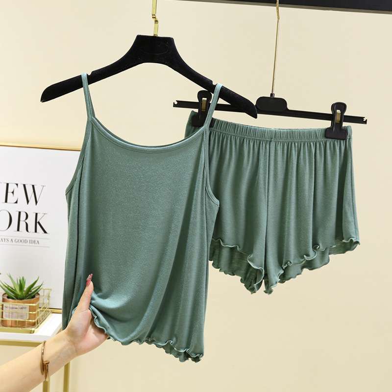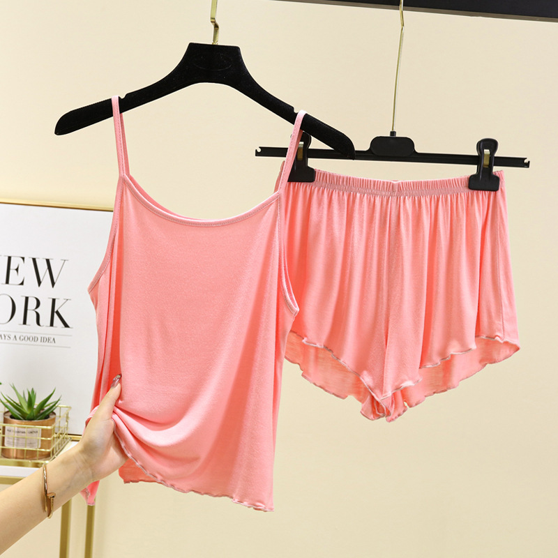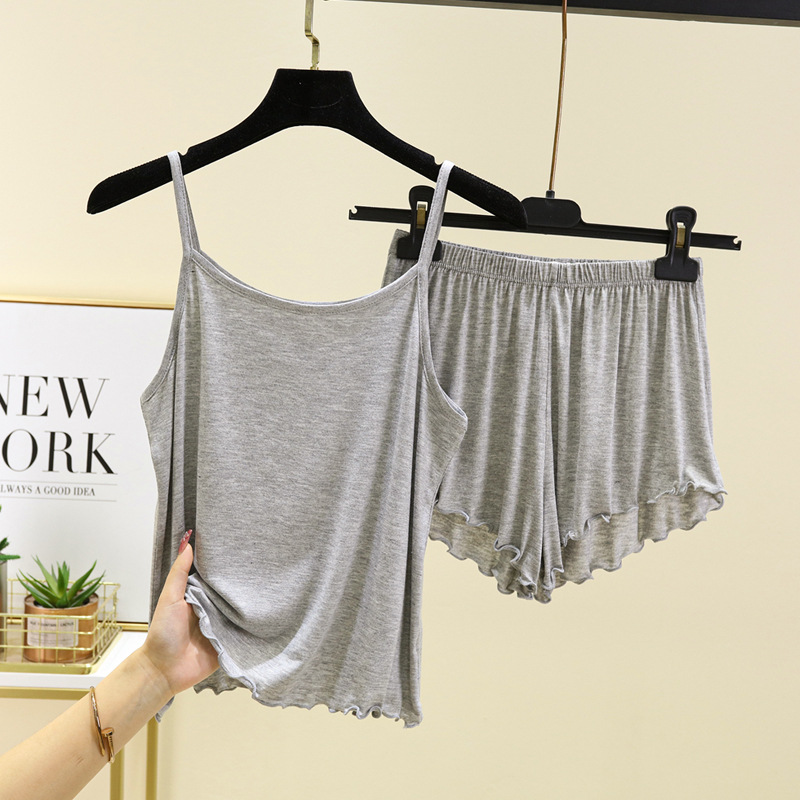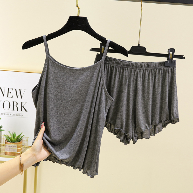 모달 파자마 여성의 여름 얇은 플립 플러스 사이즈 슬링 반바지 2 피스 의상 캐주얼 홈 의류스토어 가기