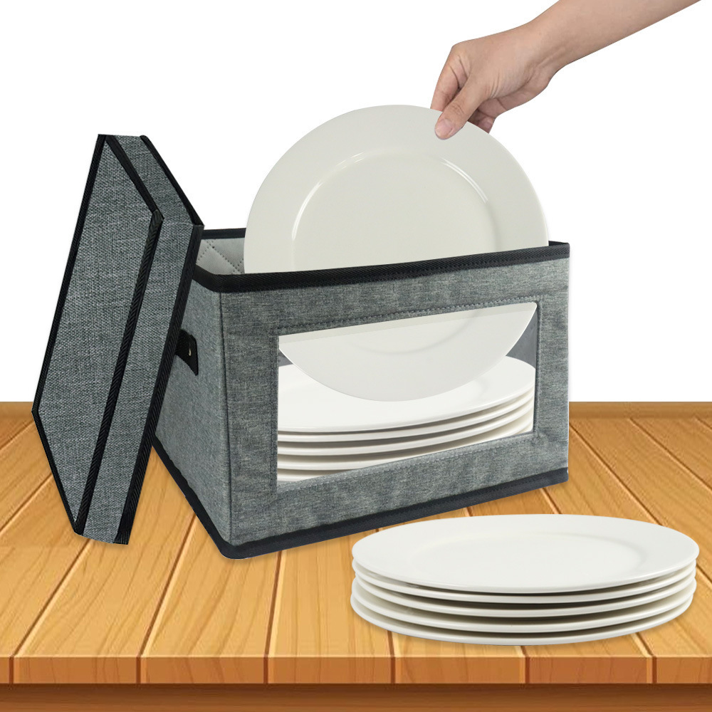 【尺寸】:餐具收纳盒尺寸为 30*30*20cm 厘米,每个盒子配有 12 个毛毡隔板,可容纳直径为 12 个直径为 8 英寸(或更小的)盘子。