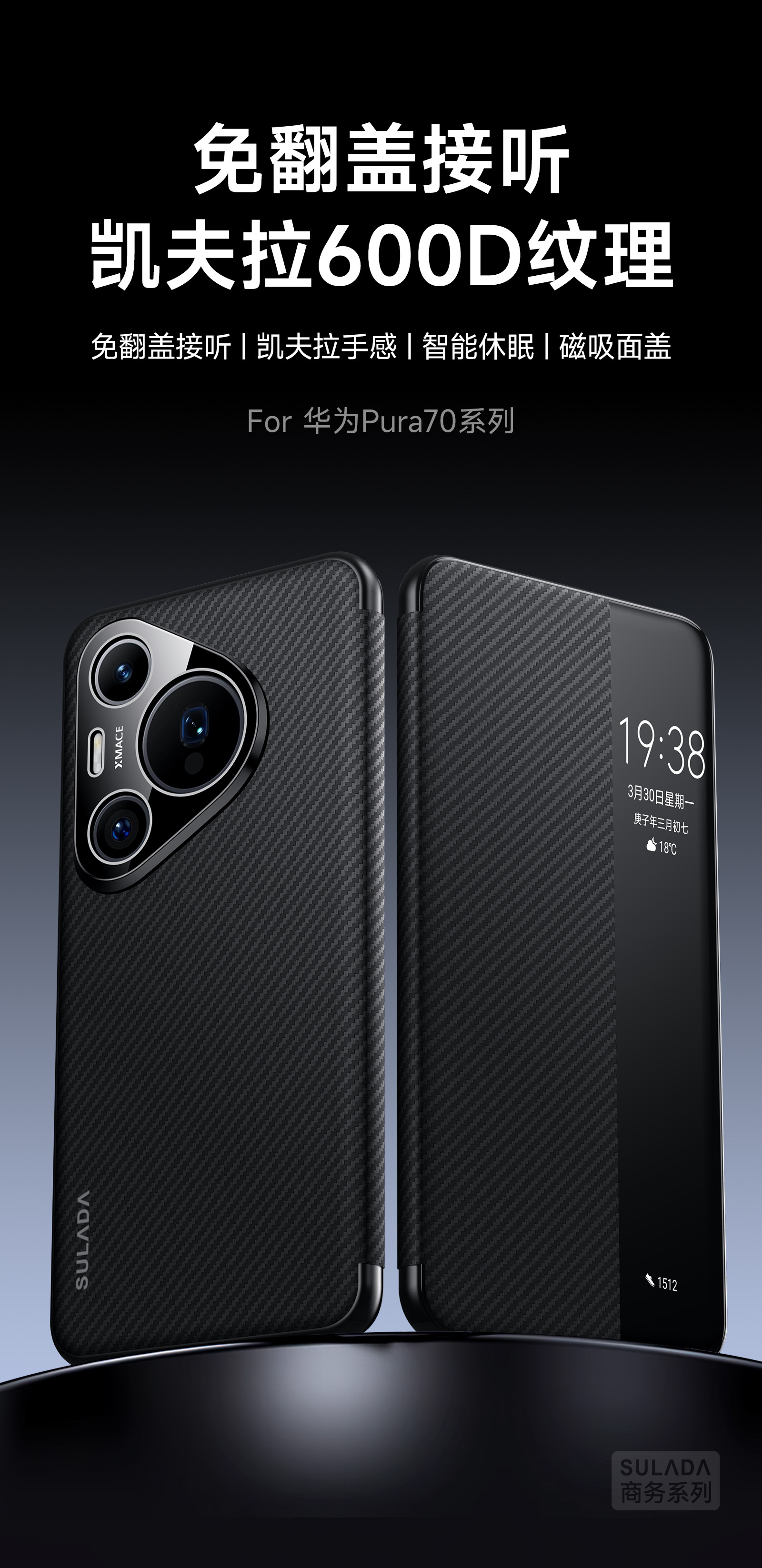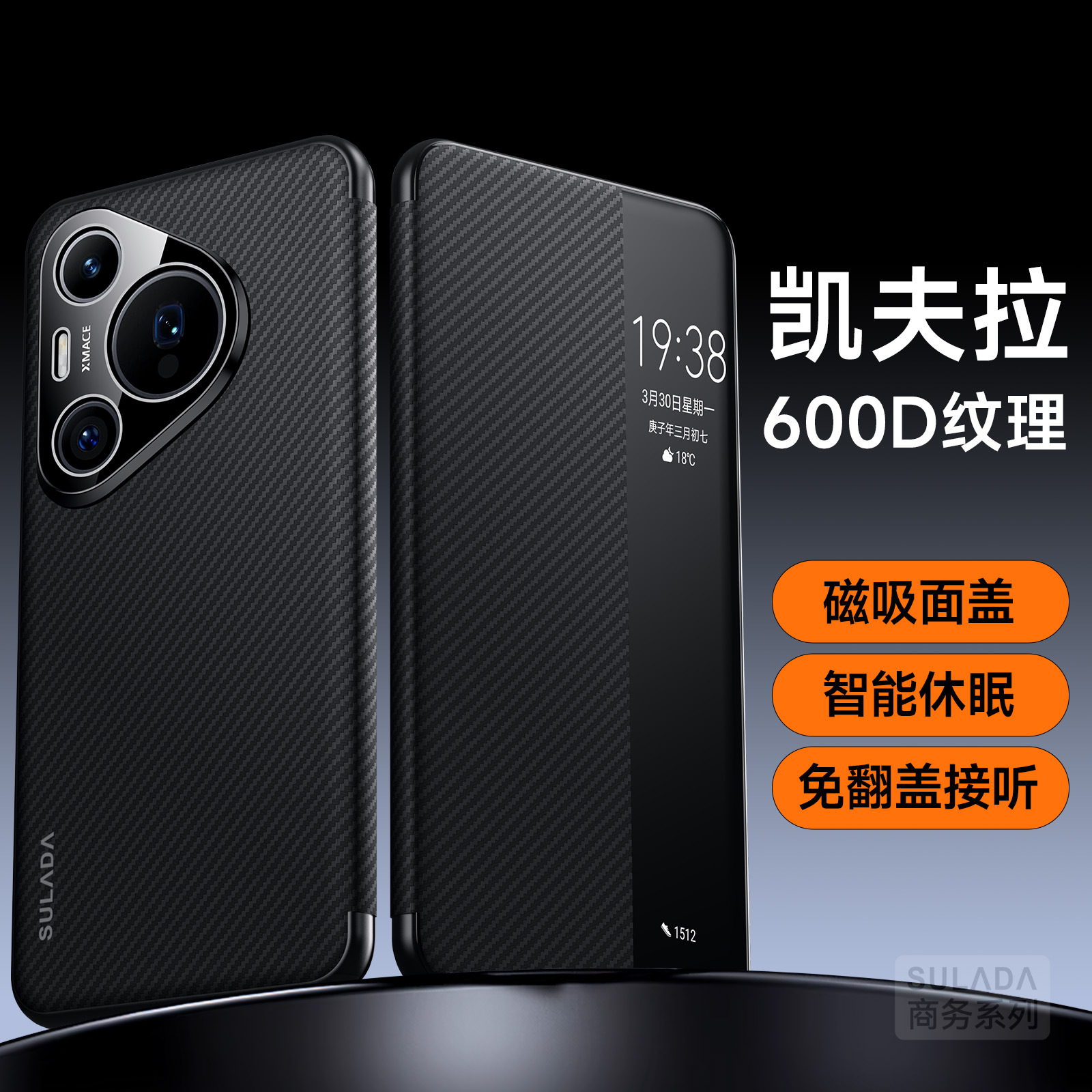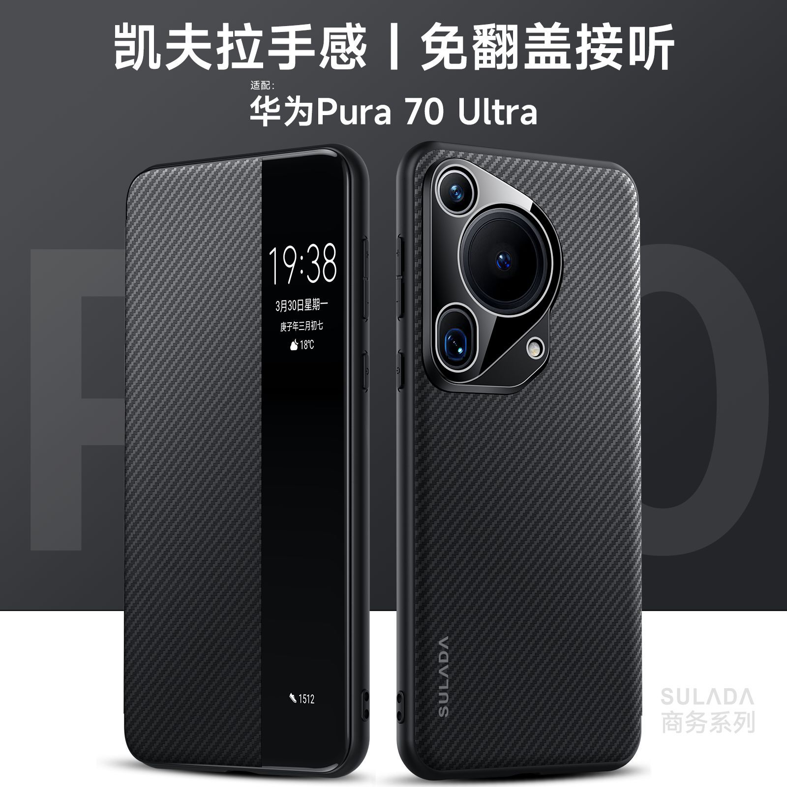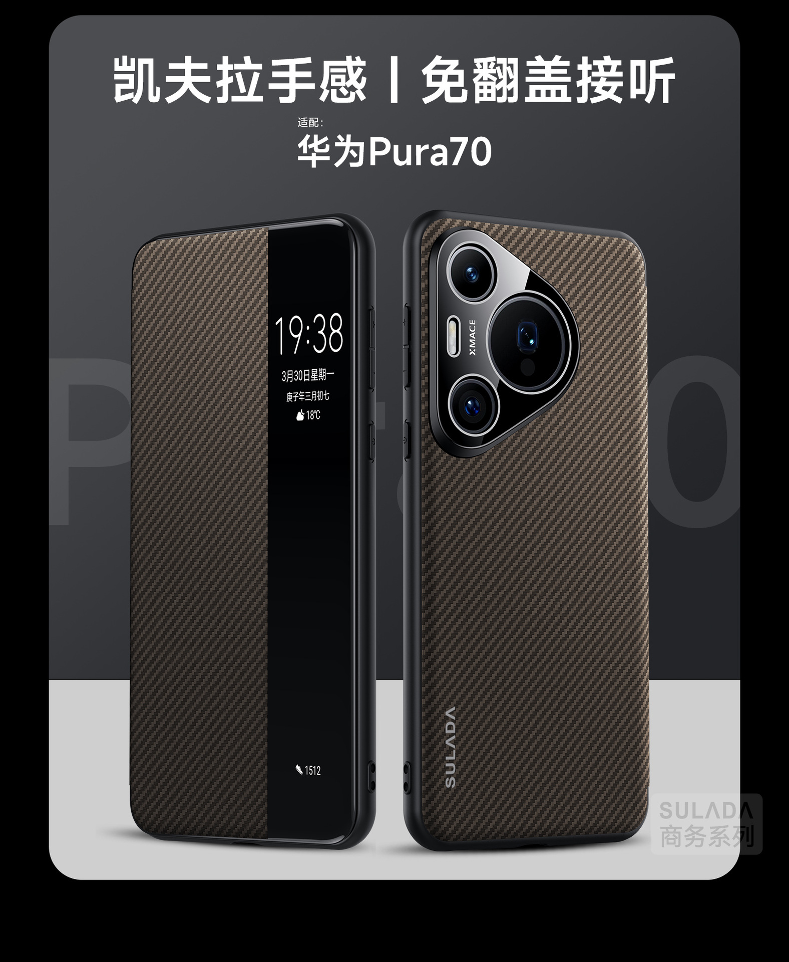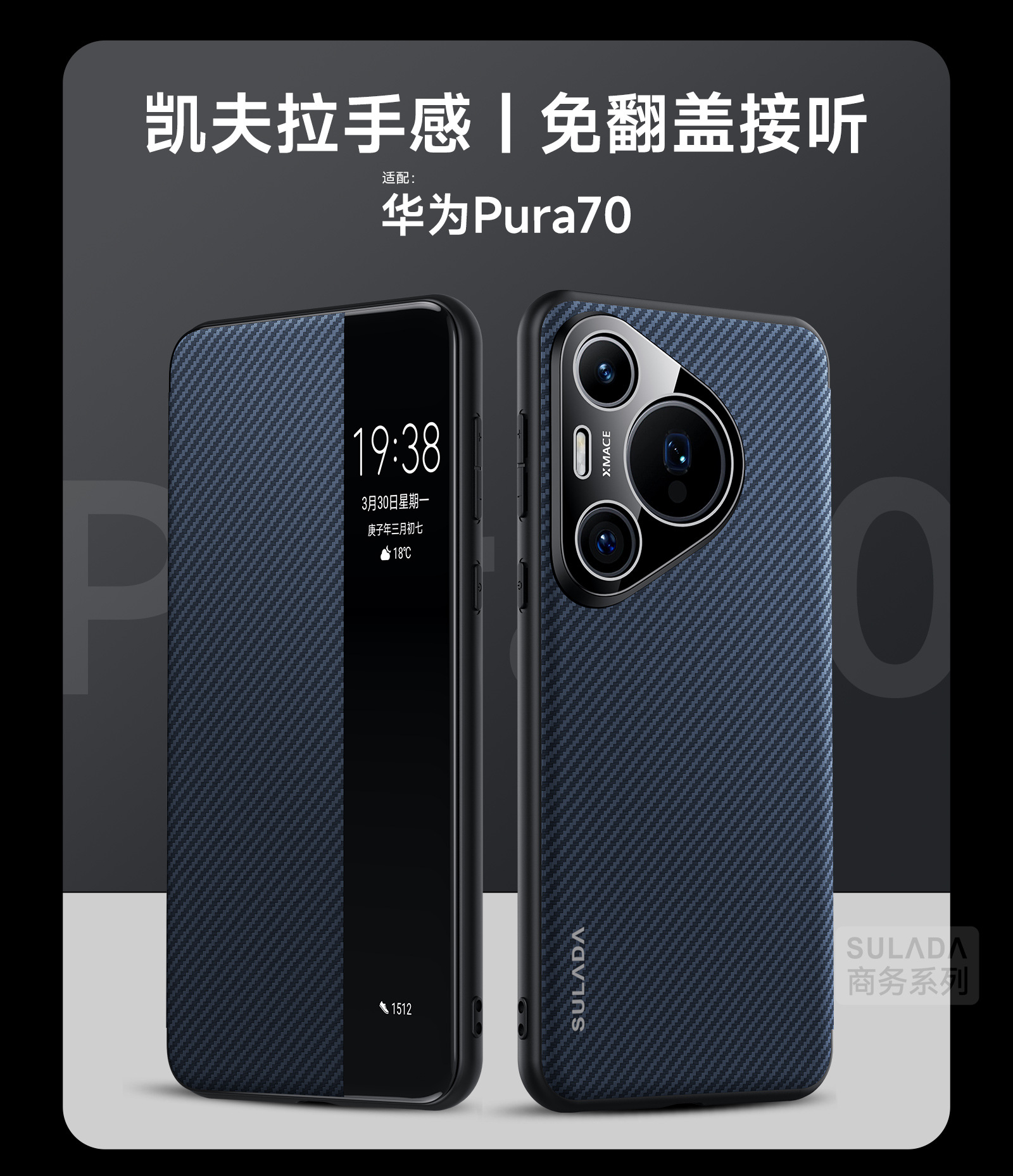 Pura70 플립 스마트 폰 케이스 SULADA 비즈니스 화웨이 P70Pro Kevlar 패턴 보호 케이스 U스토어 가기