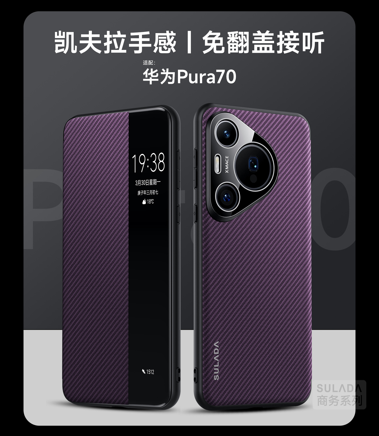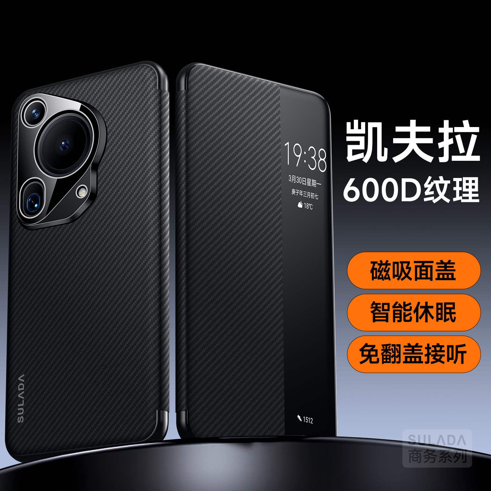 Pura70 플립 스마트 폰 케이스 SULADA 비즈니스 화웨이 P70Pro Kevlar 패턴 보호 케이스 U