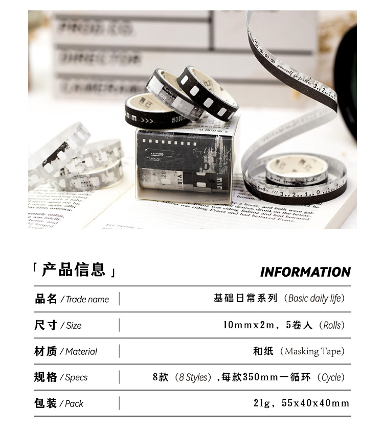 기본 일일 조합 및 종이 테이프 레트로 인 스타일 디지털 흑백 영어 손 계정 일기 장식 콜라주스토어 가기