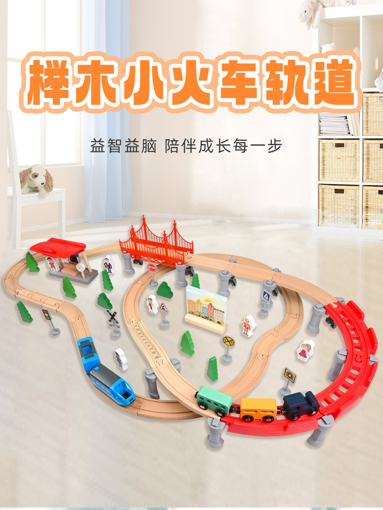 고속 레일 나무 레일 자동차 전기 기차 트랙 나무 작은 기차 단단한 나무 장난감 패키지 트랙은 조각과 일치 할 수 있습니다스토어 가기