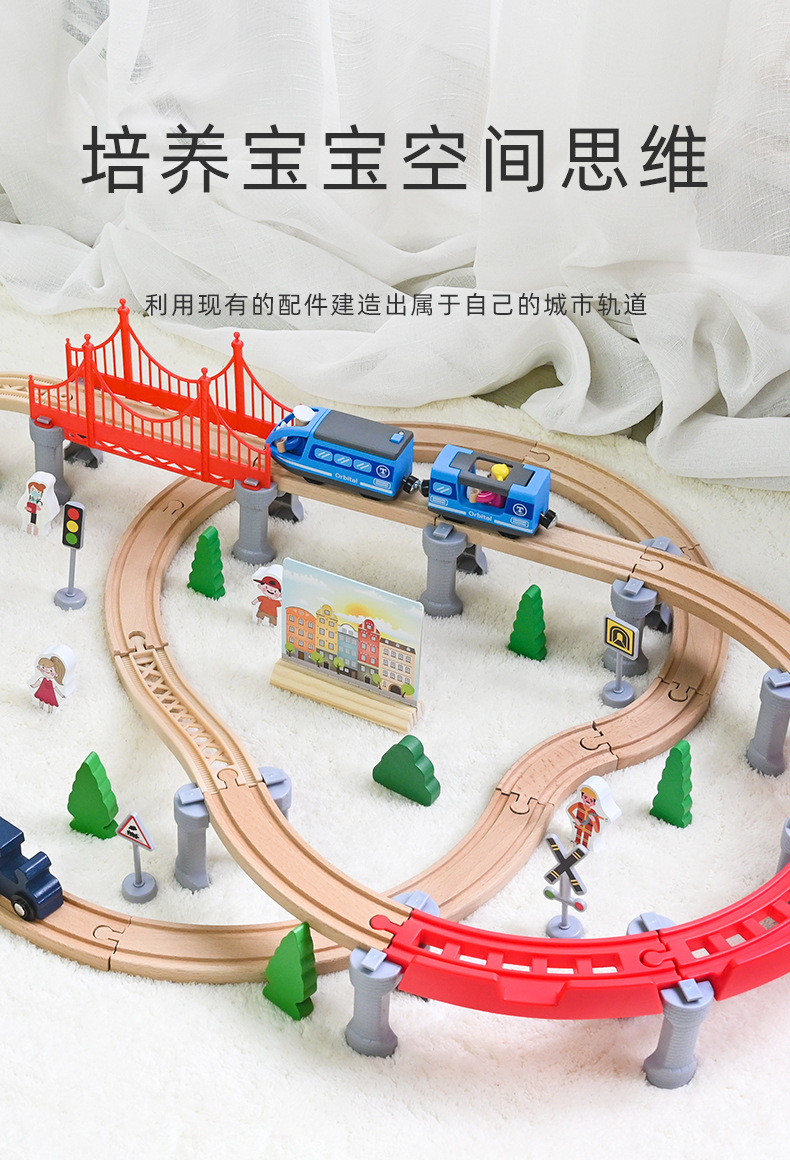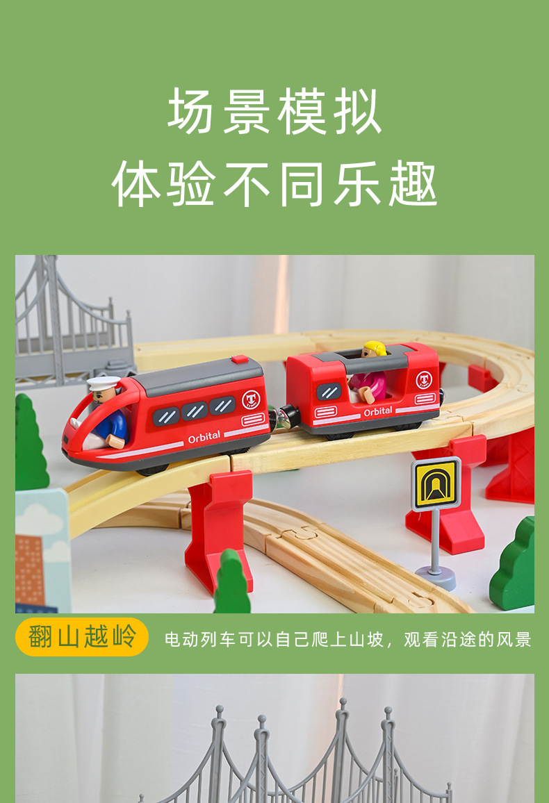 고속 레일 나무 레일 자동차 전기 기차 트랙 나무 작은 기차 단단한 나무 장난감 패키지 트랙은 조각과 일치 할 수 있습니다
