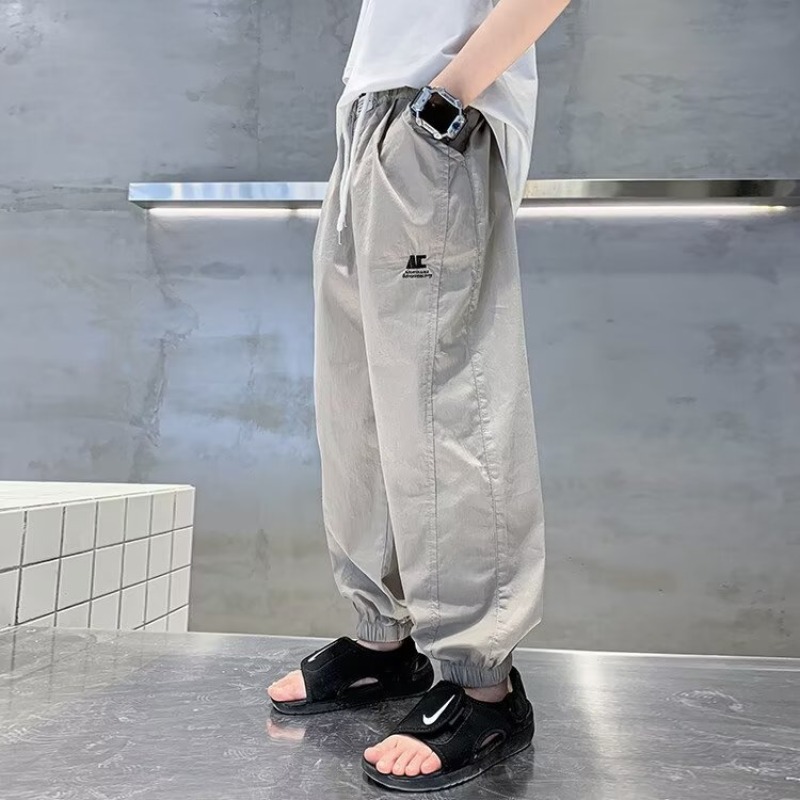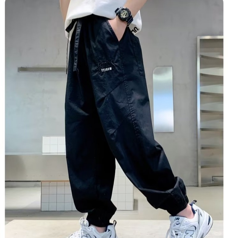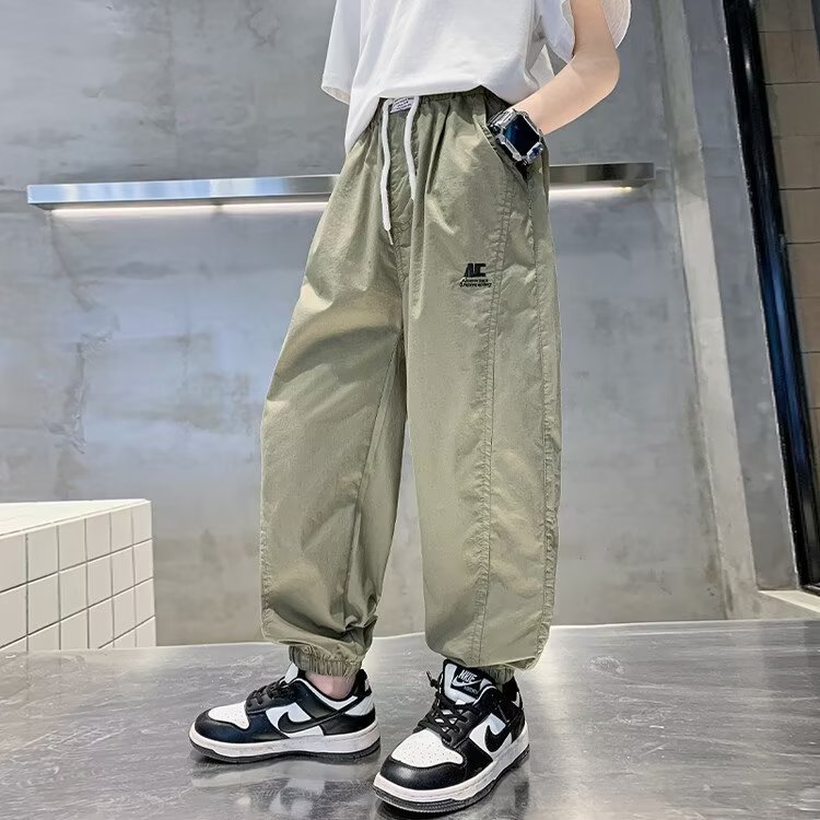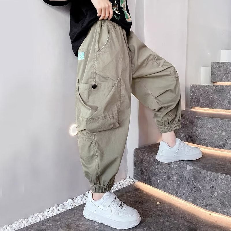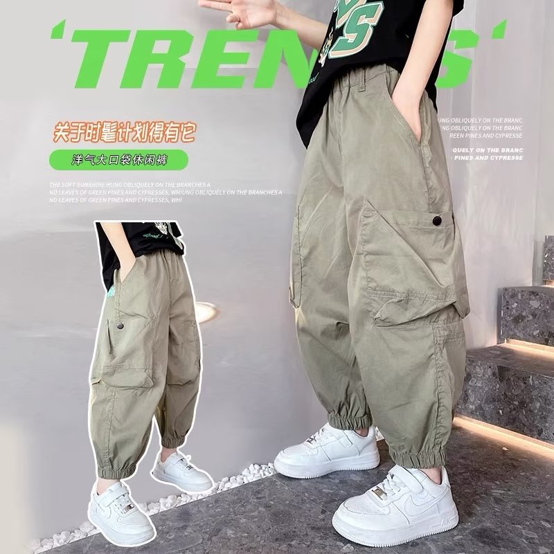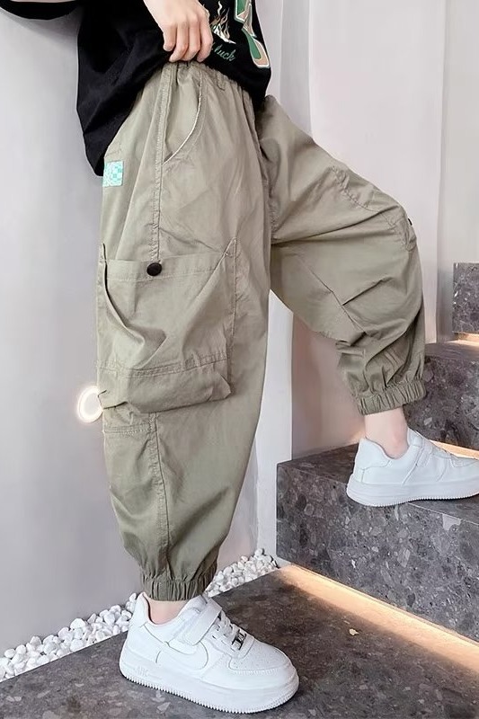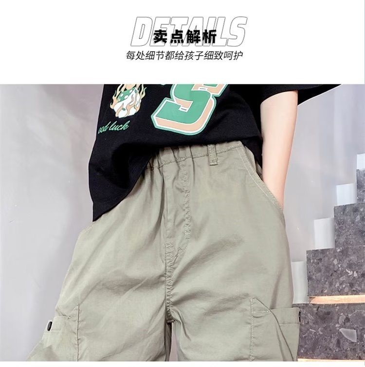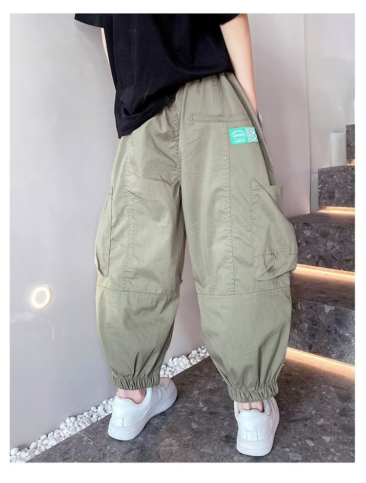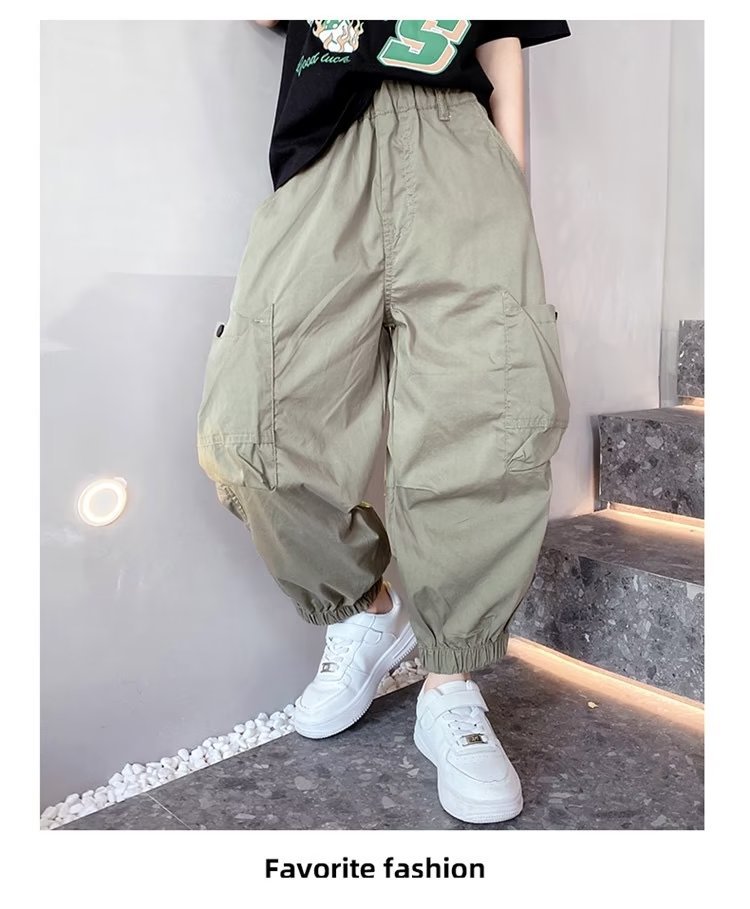 어린이 봄과 여름 얇은 순면 바지 6-15 세 큰 주머니화물 바지 큰 소년 한국 유행 바지