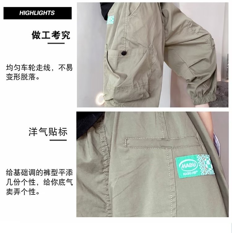 어린이 봄과 여름 얇은 순면 바지 6-15 세 큰 주머니화물 바지 큰 소년 한국 유행 바지스토어 가기