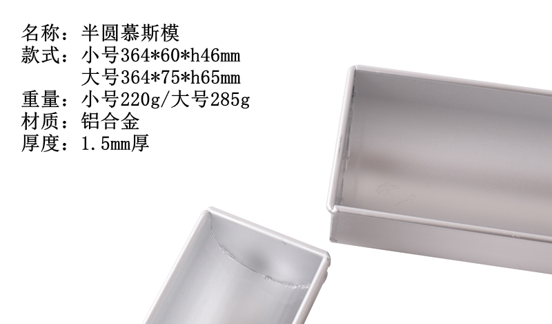 작은 반원/큰 반원 긴 스트립 무스 금형 알루미늄 계란 롤 금형 무지개 샌드위치 케이크 금형 베이킹 금형