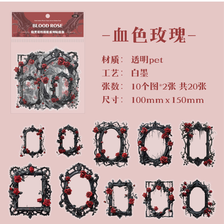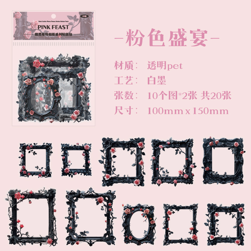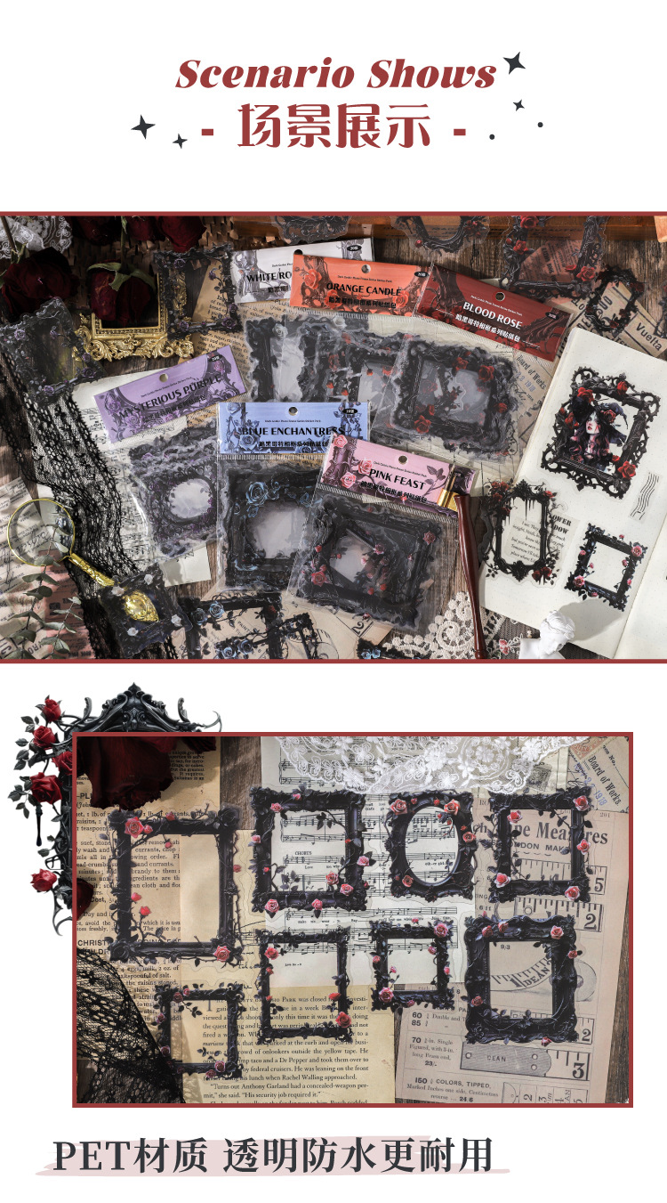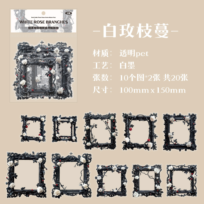 디아블로 고딕 사진 프레임 애완 동물 스티커 가방 복고풍 국경 꽃 투명 손 계정 장식 재료 스티커 20