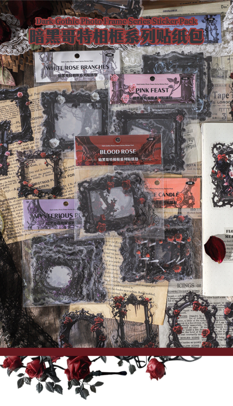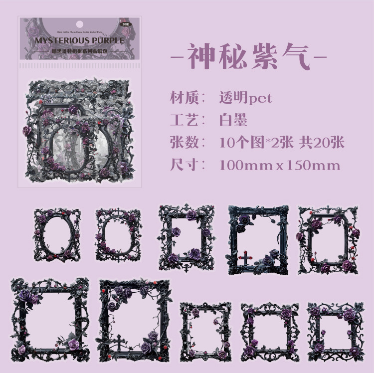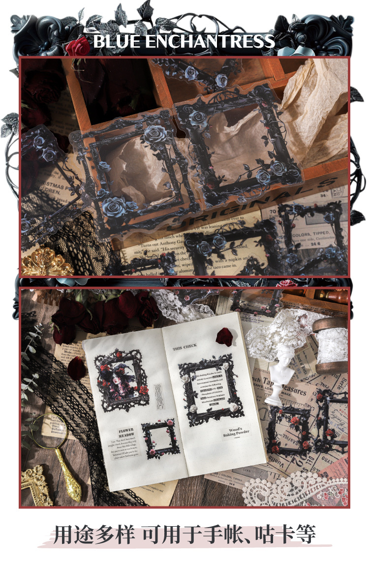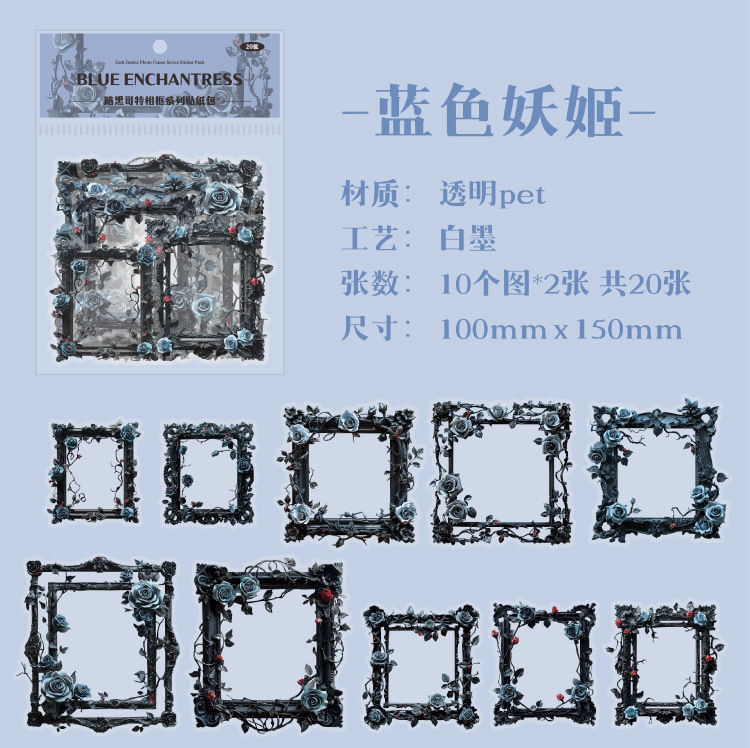 디아블로 고딕 사진 프레임 애완 동물 스티커 가방 복고풍 국경 꽃 투명 손 계정 장식 재료 스티커 20스토어 가기