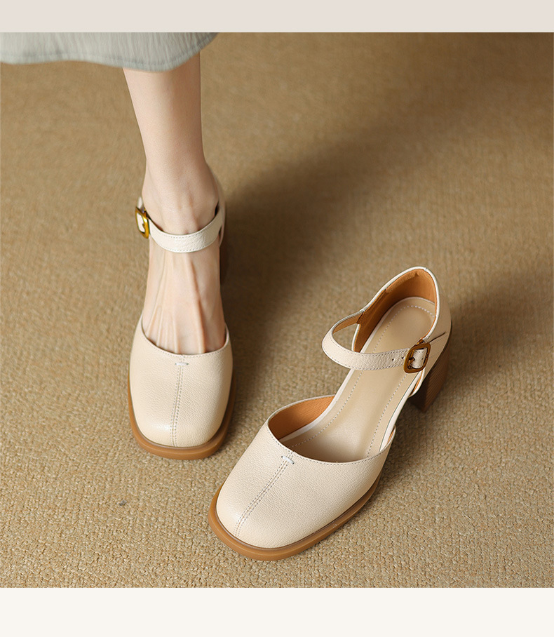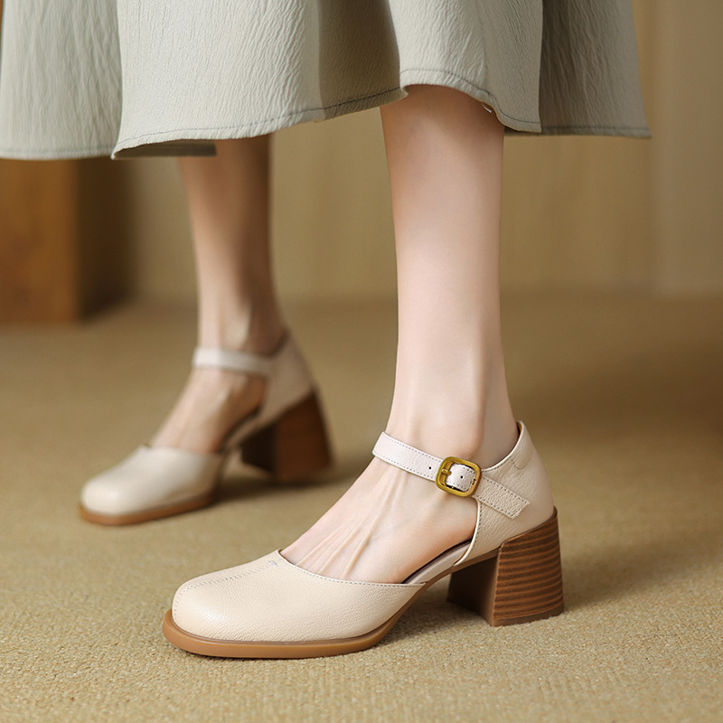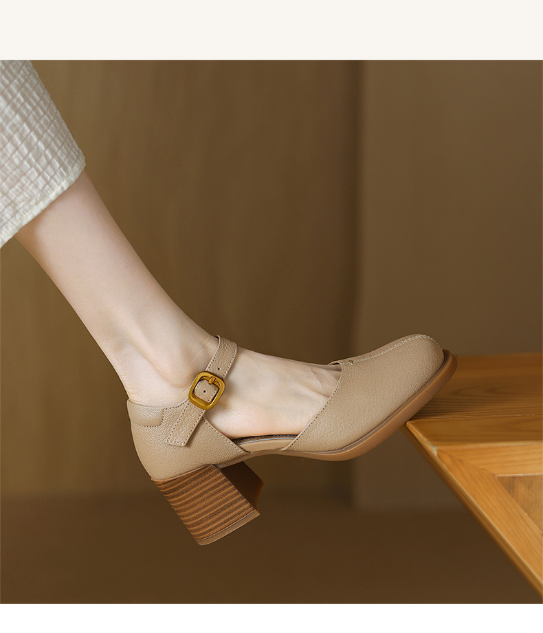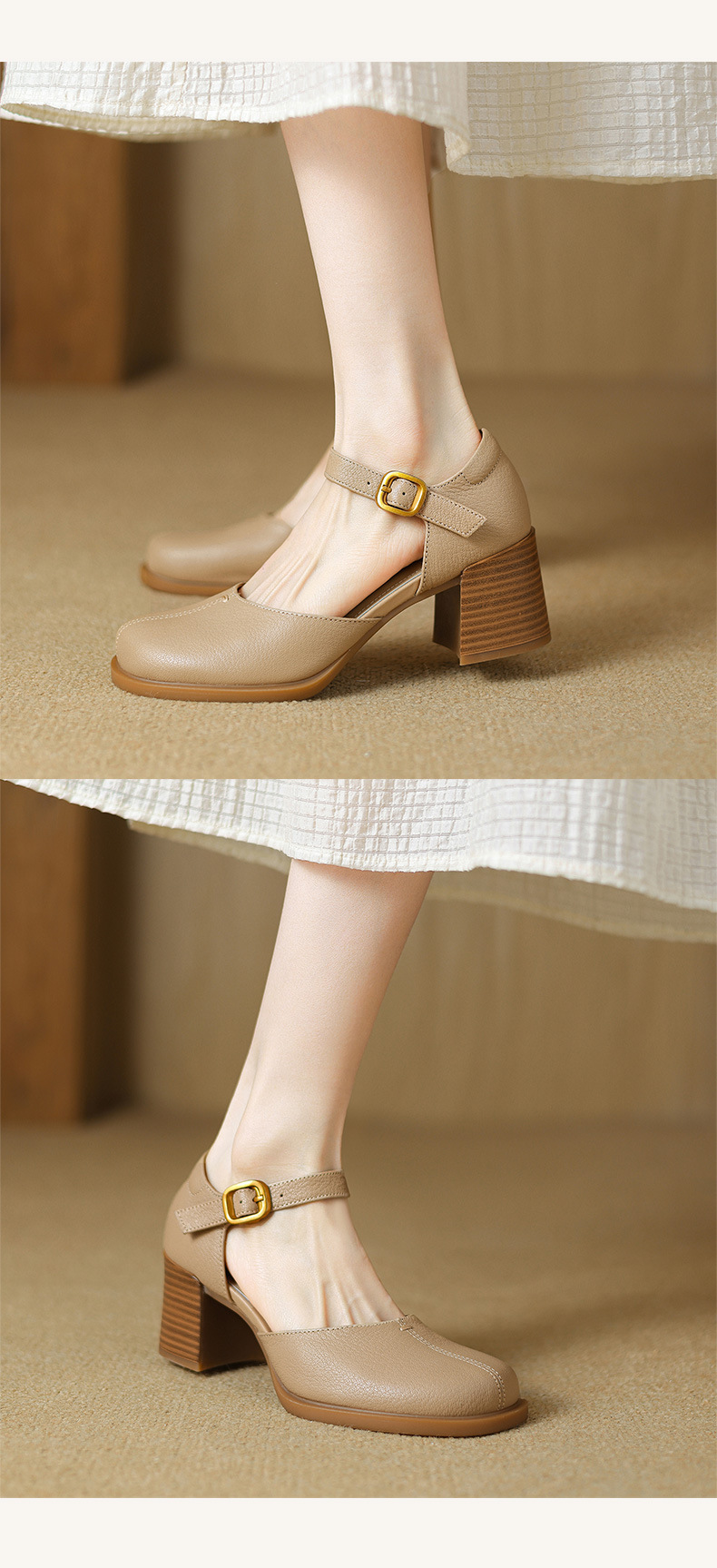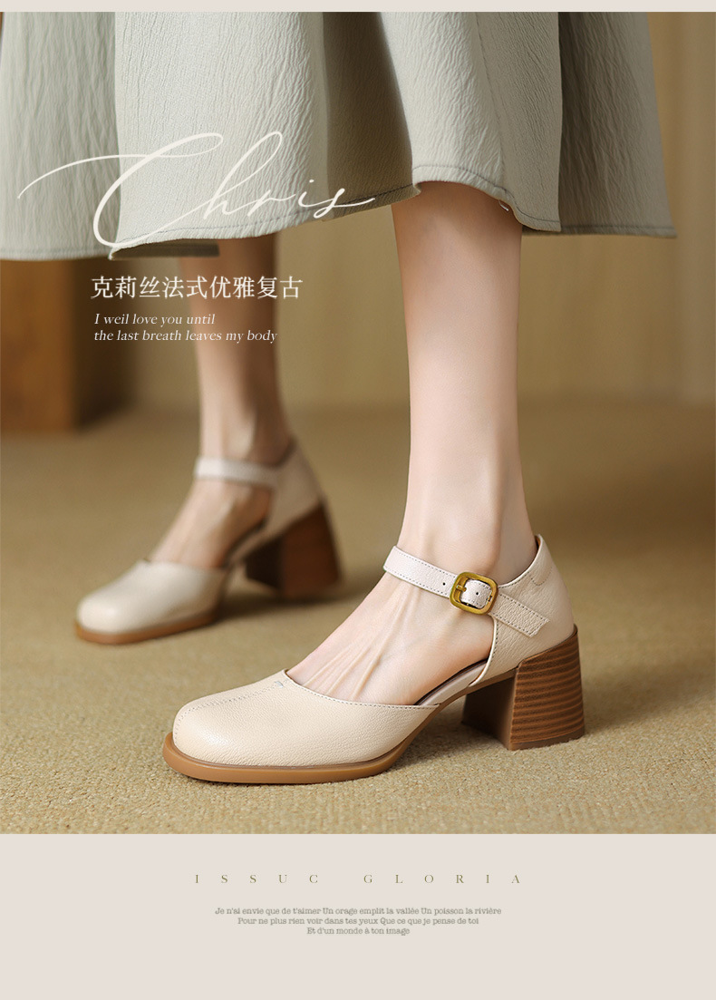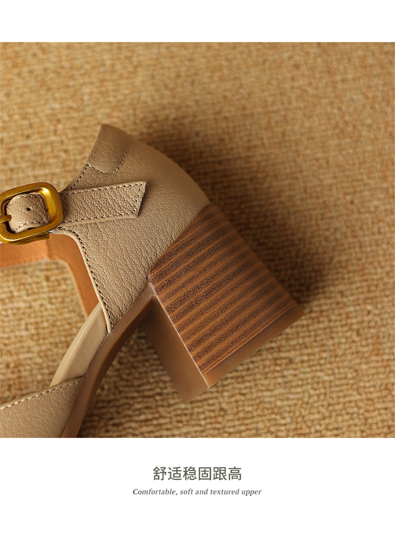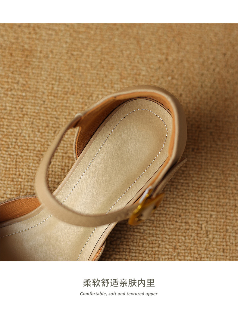 바오터 두꺼운 힐 요정 할로우 샌들 여성용 정품 가죽 2024 새로운 여름 한국 스타일 하이힐 방수 플랫폼 로마 신발스토어 가기