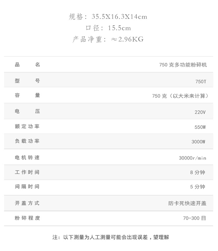 750G 크러셔 스테인레스 스틸 곡물 분쇄기 초정밀 연삭 기계 가정용 전기 분쇄기스토어 가기