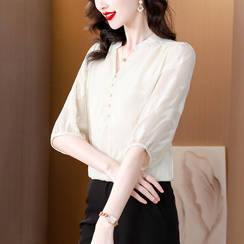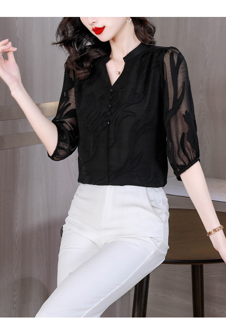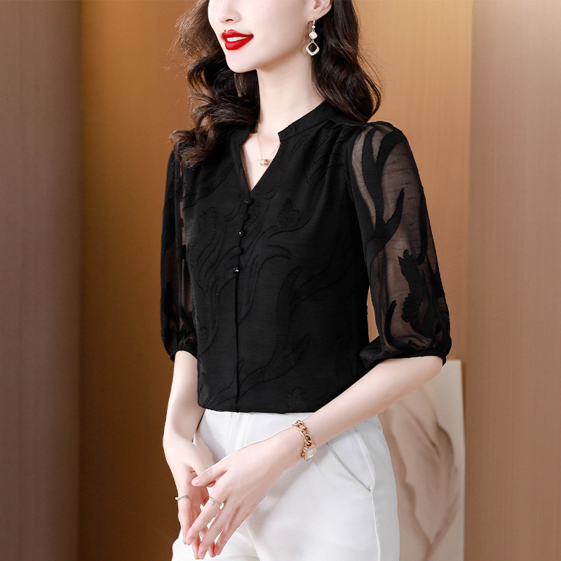 여성용 반팔 얇은 시폰 셔츠, 2026년 여름 신상, 작은 체형을 위한 레이스 자외선 차단 뱃살 커버 빅사이즈 상의스토어 가기