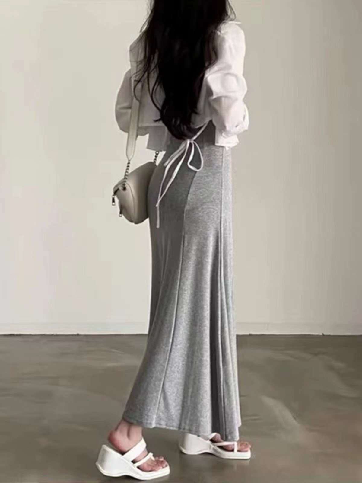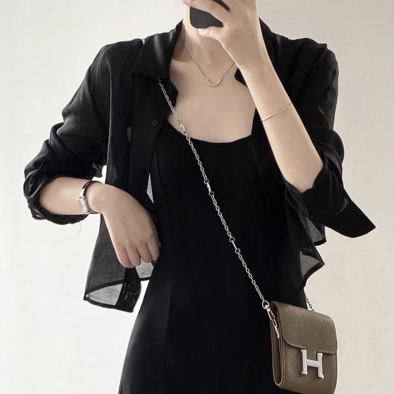 한국 세련된 여름 긴 소매 쉬폰 선스크린 셔츠 디자인 센스 돌보는 백 스트랩 백리스 짧은 셔츠스토어 가기