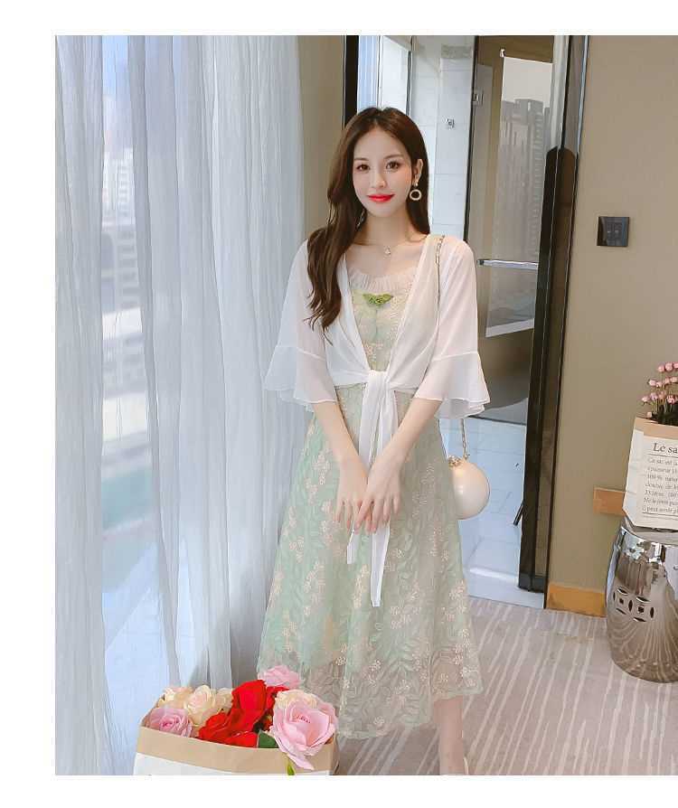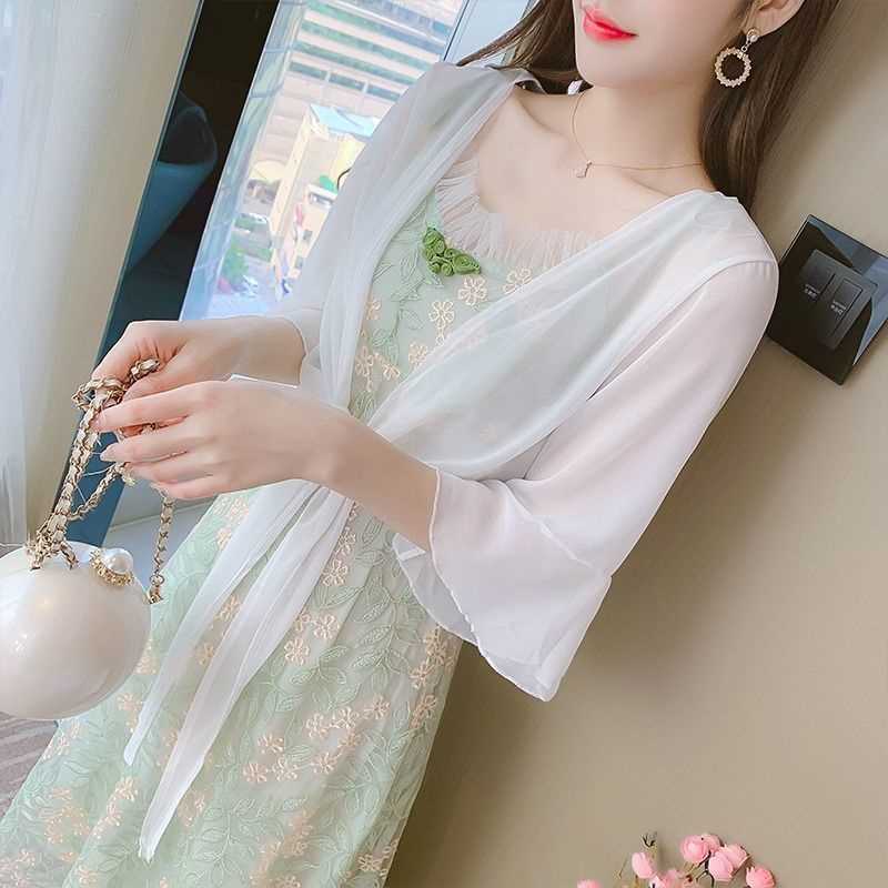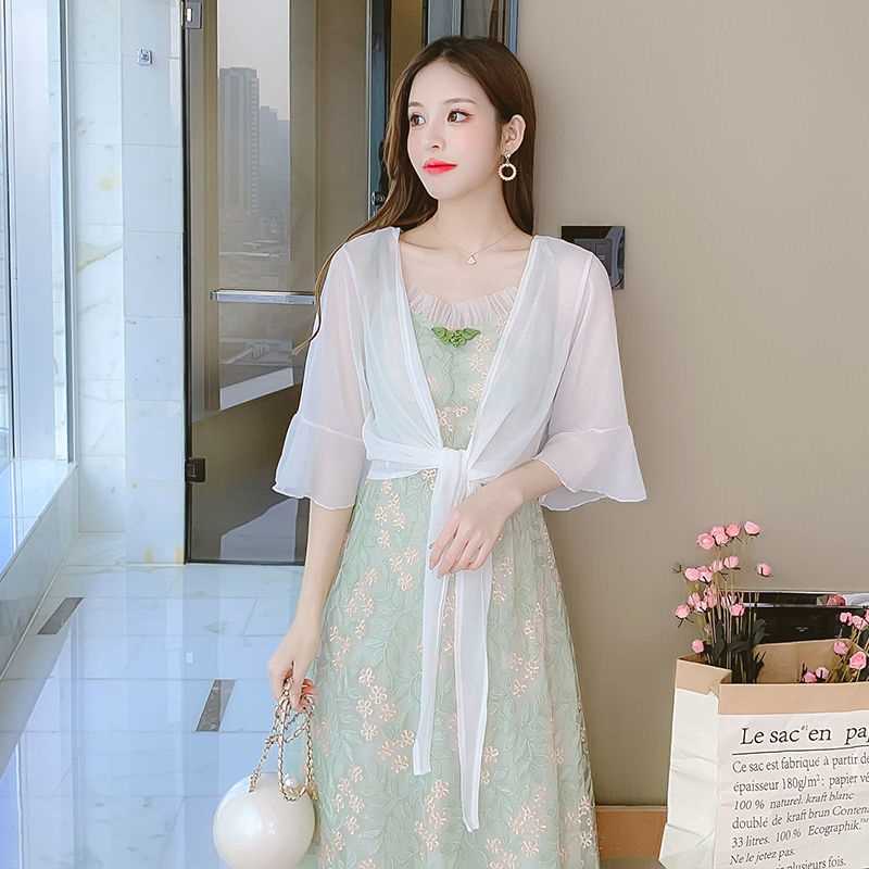 슬링 스커트 여성의 여름 짧은 외부 얇은 카디건 레이스 선스크린 의류 슬링 스커트 시폰 작은 목도리 재킷