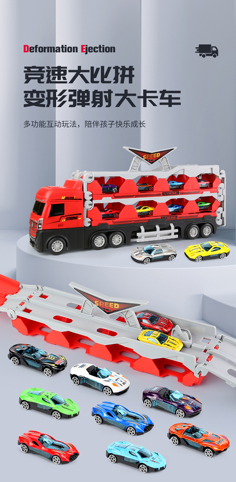 어린이용 합금 수납 컨테이너 엔지니어링 차량 변신 대형 트럭 트랙 발사 장난감 소년용 변신 레이싱카스토어 가기