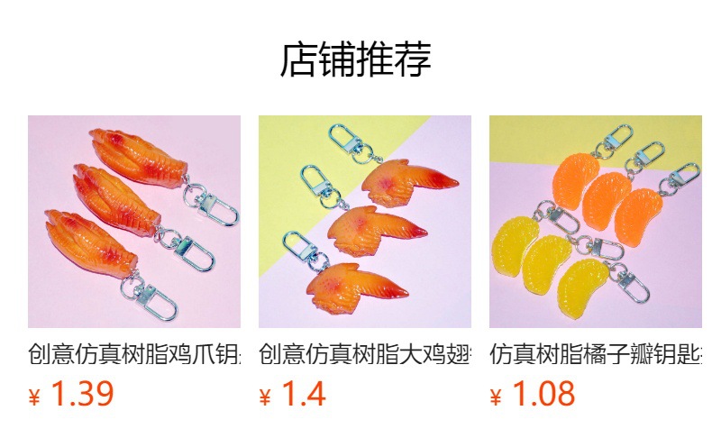 • 도어 버클 시뮬레이션 수지 닭 날개 키 체인 펜던트
