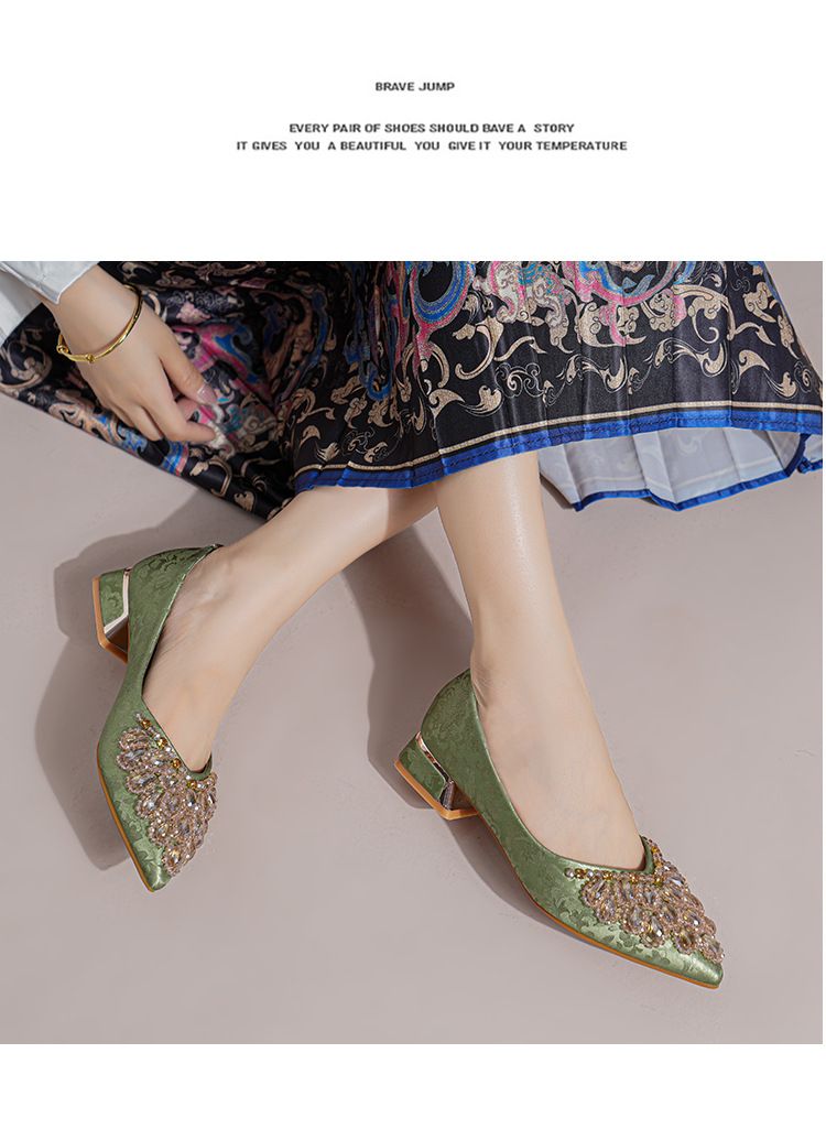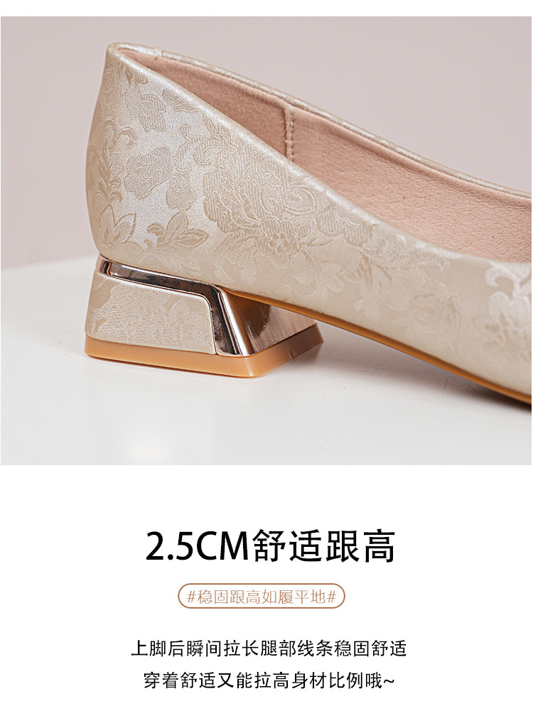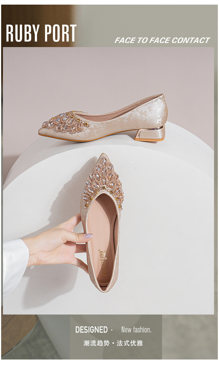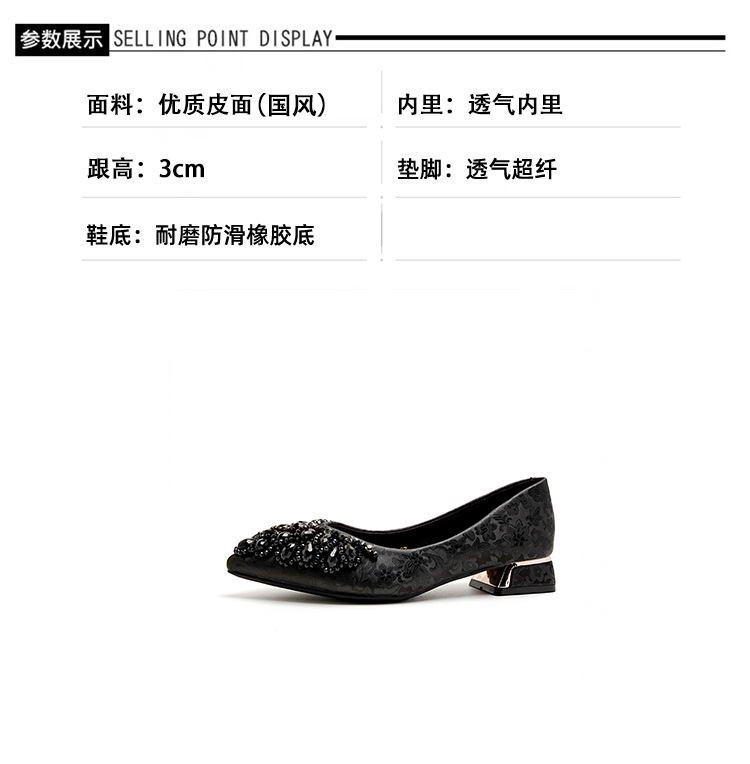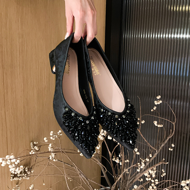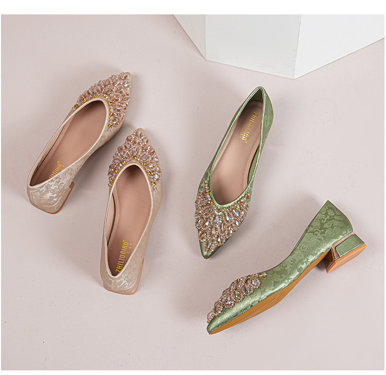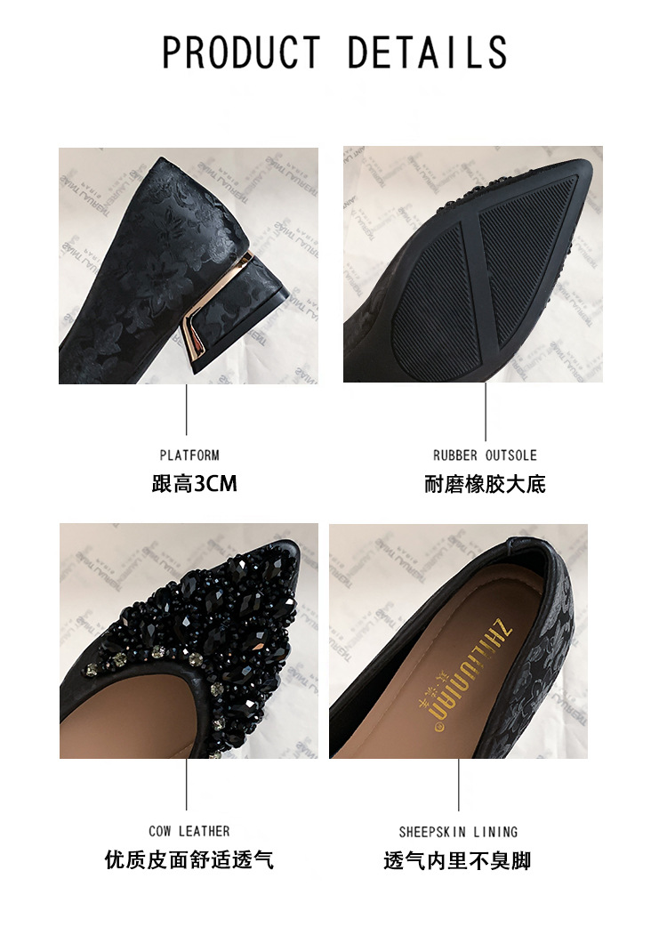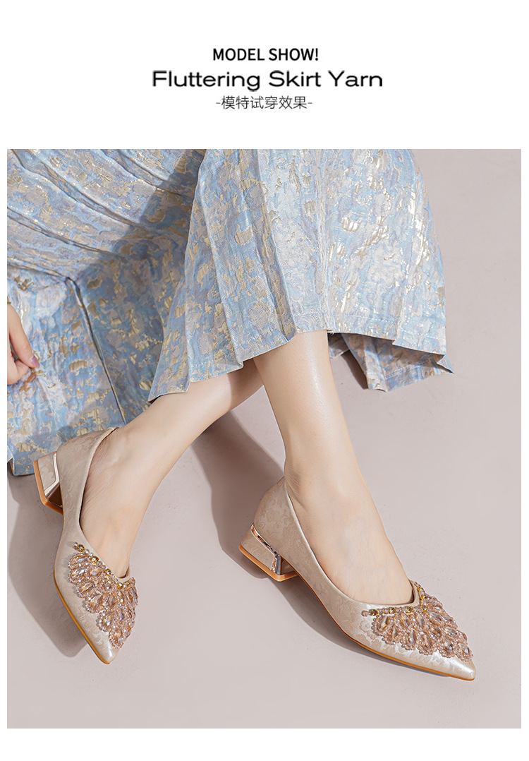 66-A2 국가 스타일 2024 새로운 중국 뾰족한 신발 두꺼운 힐 미드 힐 수제 구슬 여성 신발 패션 올 매치 여성 신발스토어 가기